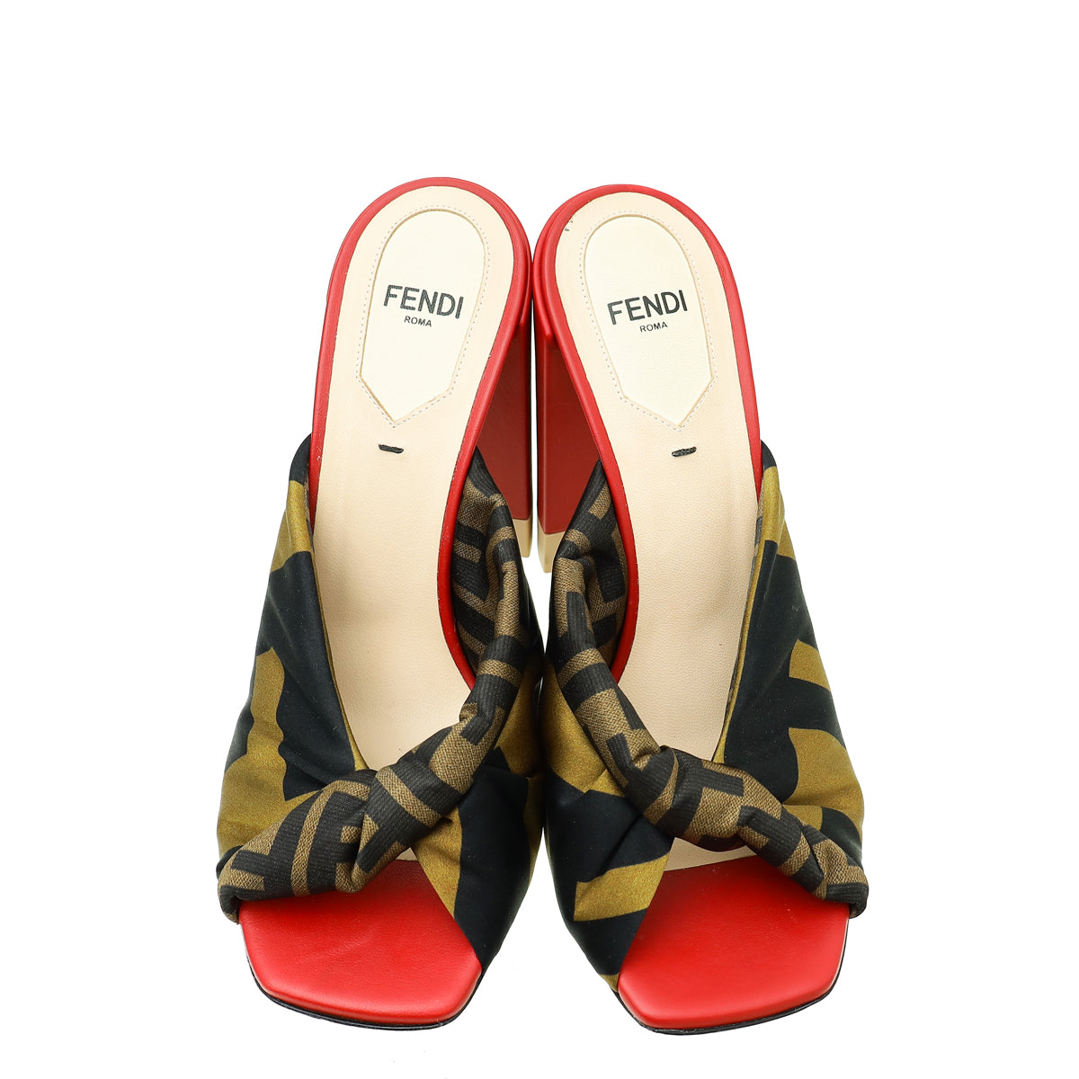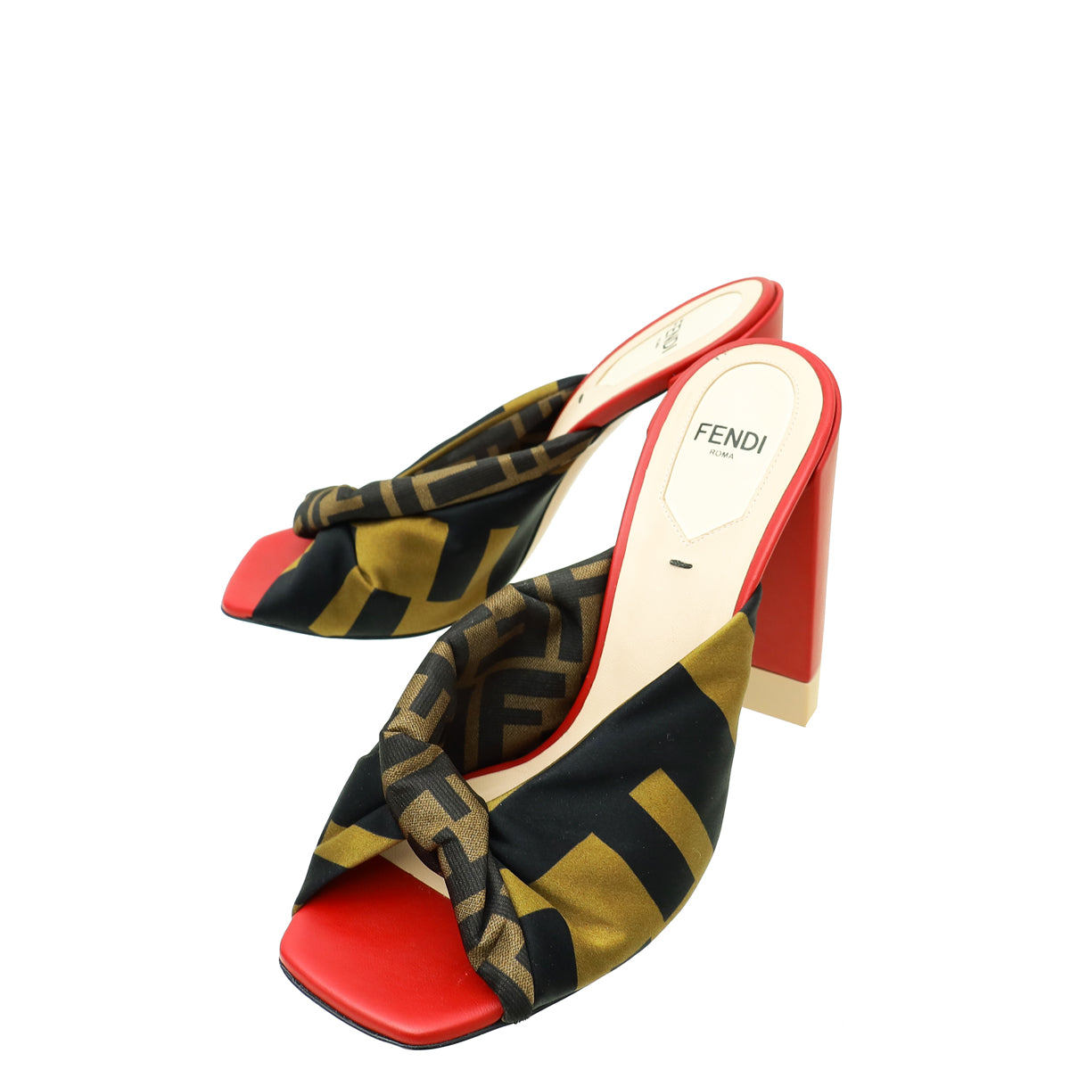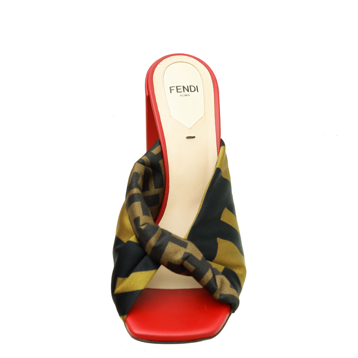 Fendi Bicolor Zucca Print Satin Twist Mules 36-Fendi-THE CLOSET