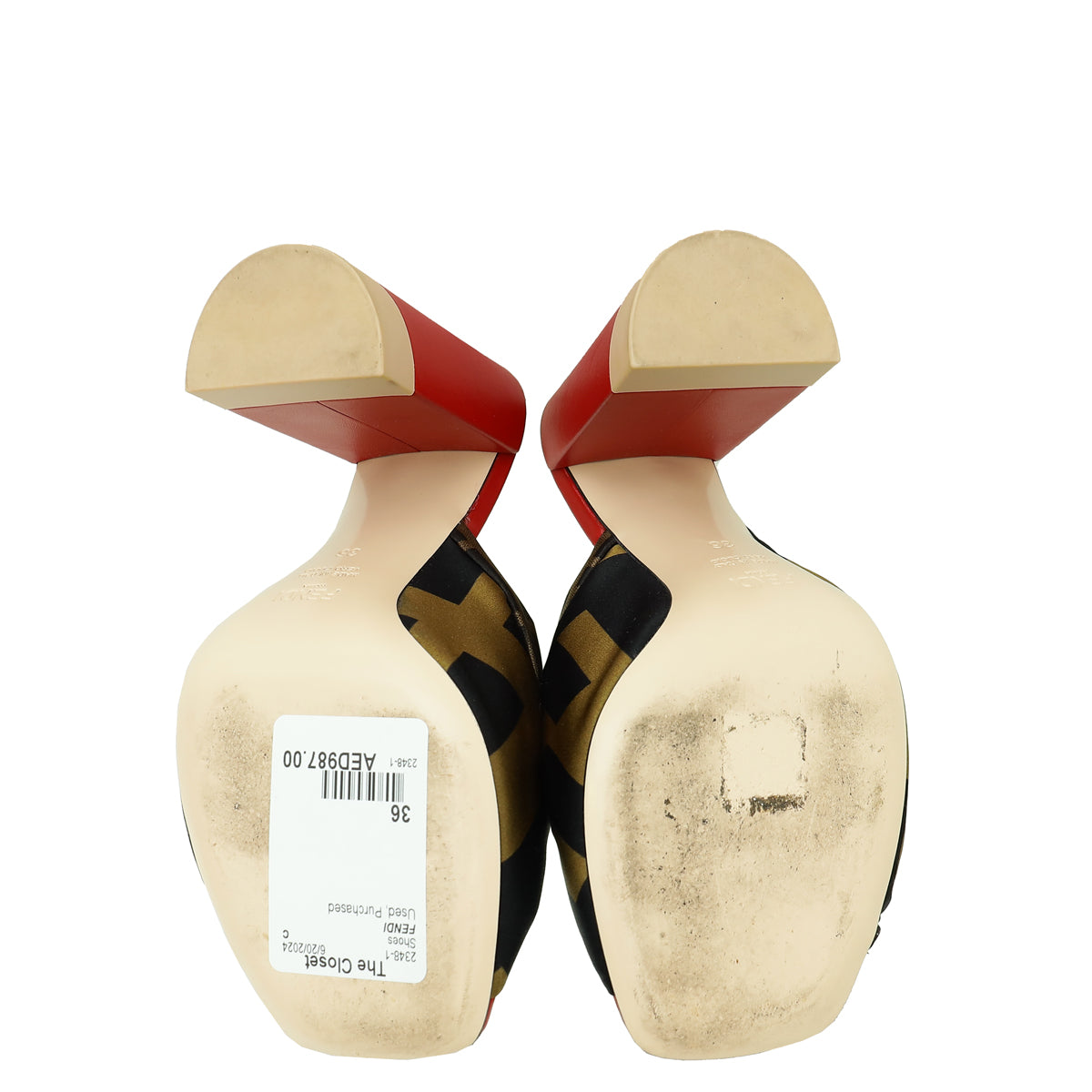 Fendi Bicolor Zucca Print Satin Twist Mules 36