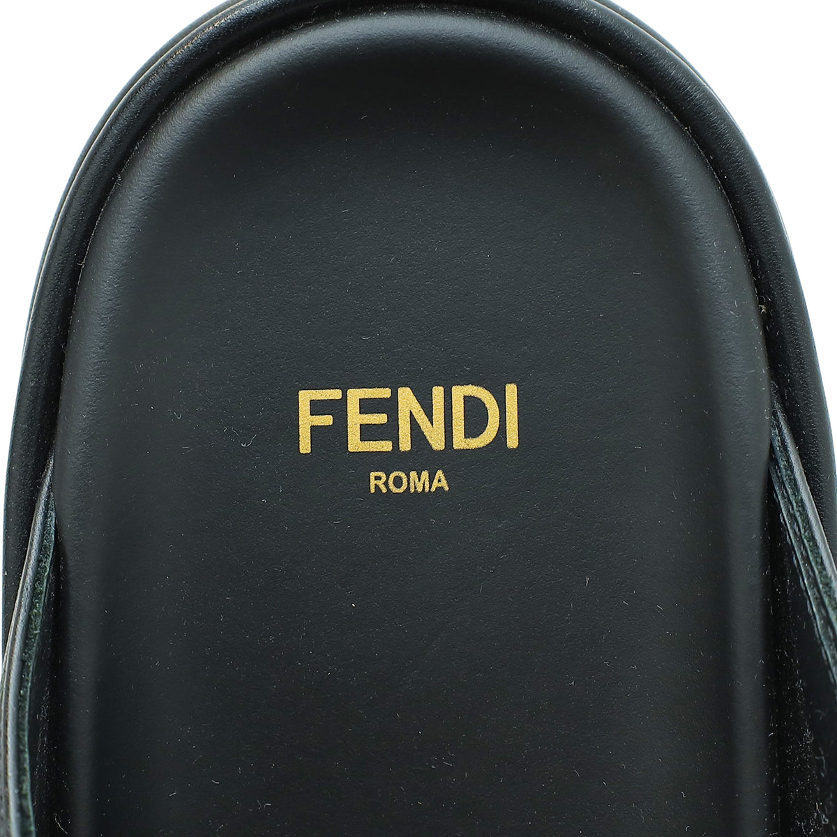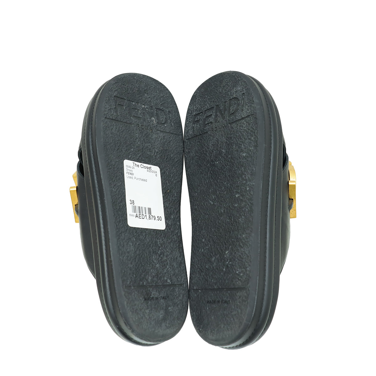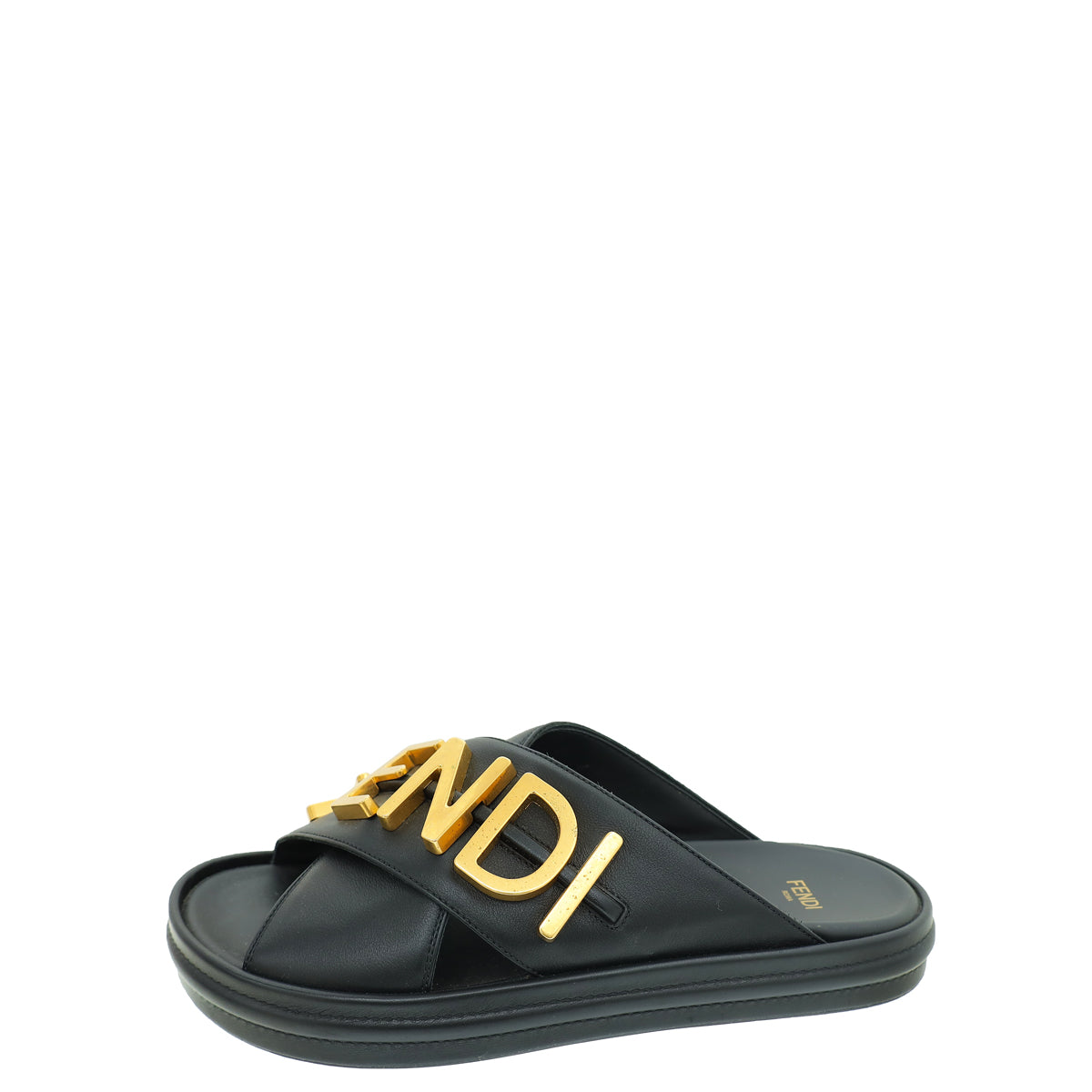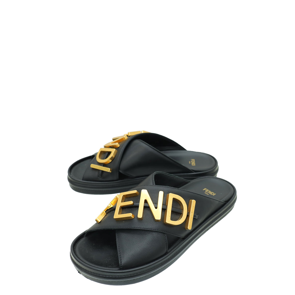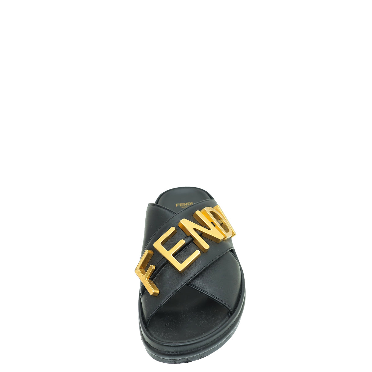 Fendi Black Logo Vitello Fendigraphy Slide Sandals 38