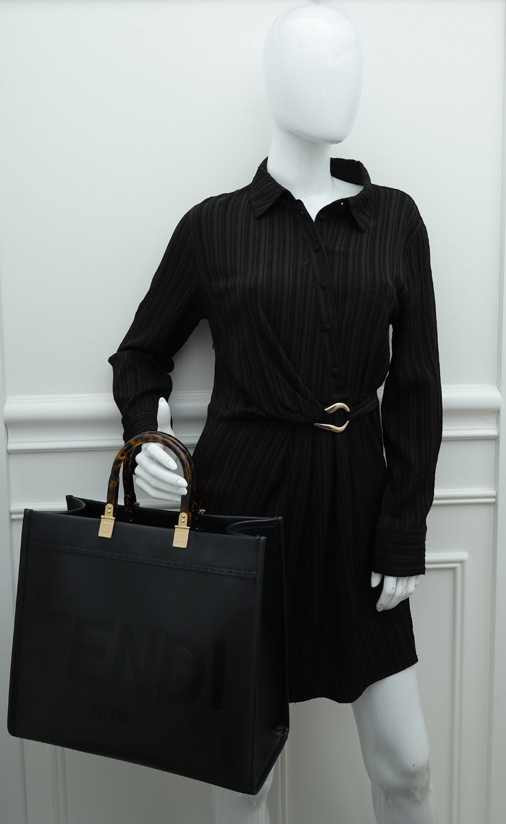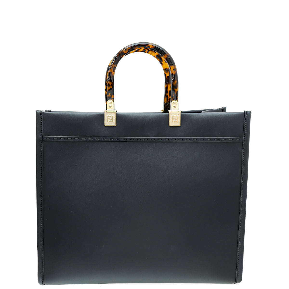 Material: Black Smooth Calf Leather with Stamped “FENDI ROMA” and Tortoiseshell Effect Plexiglass Handles