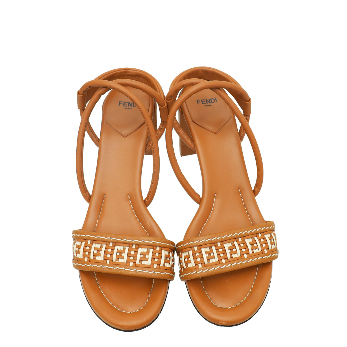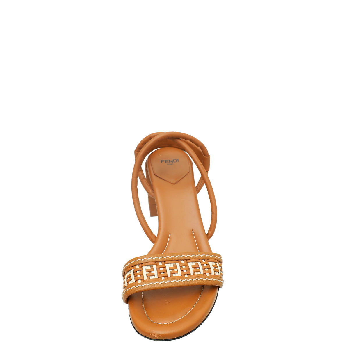 Fendi Brandy Brown Interwoven FF Cross Slingback Sandals 39