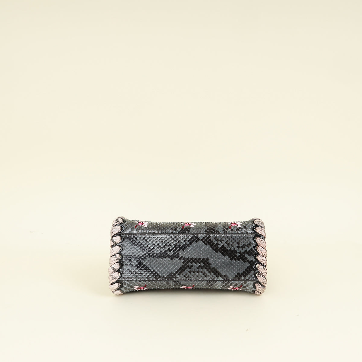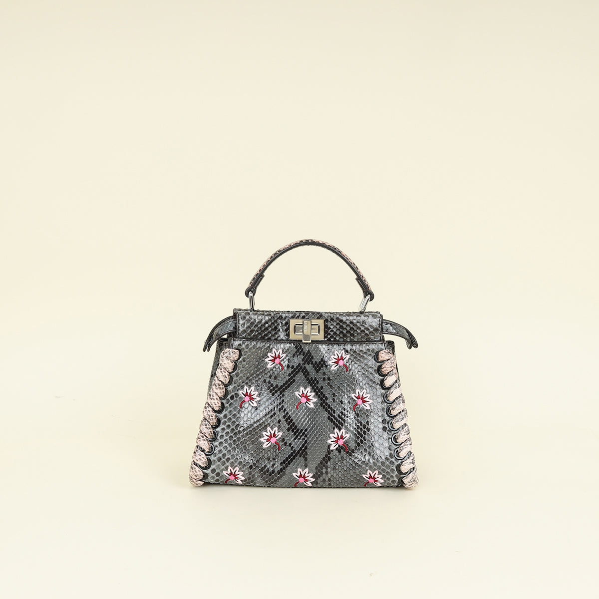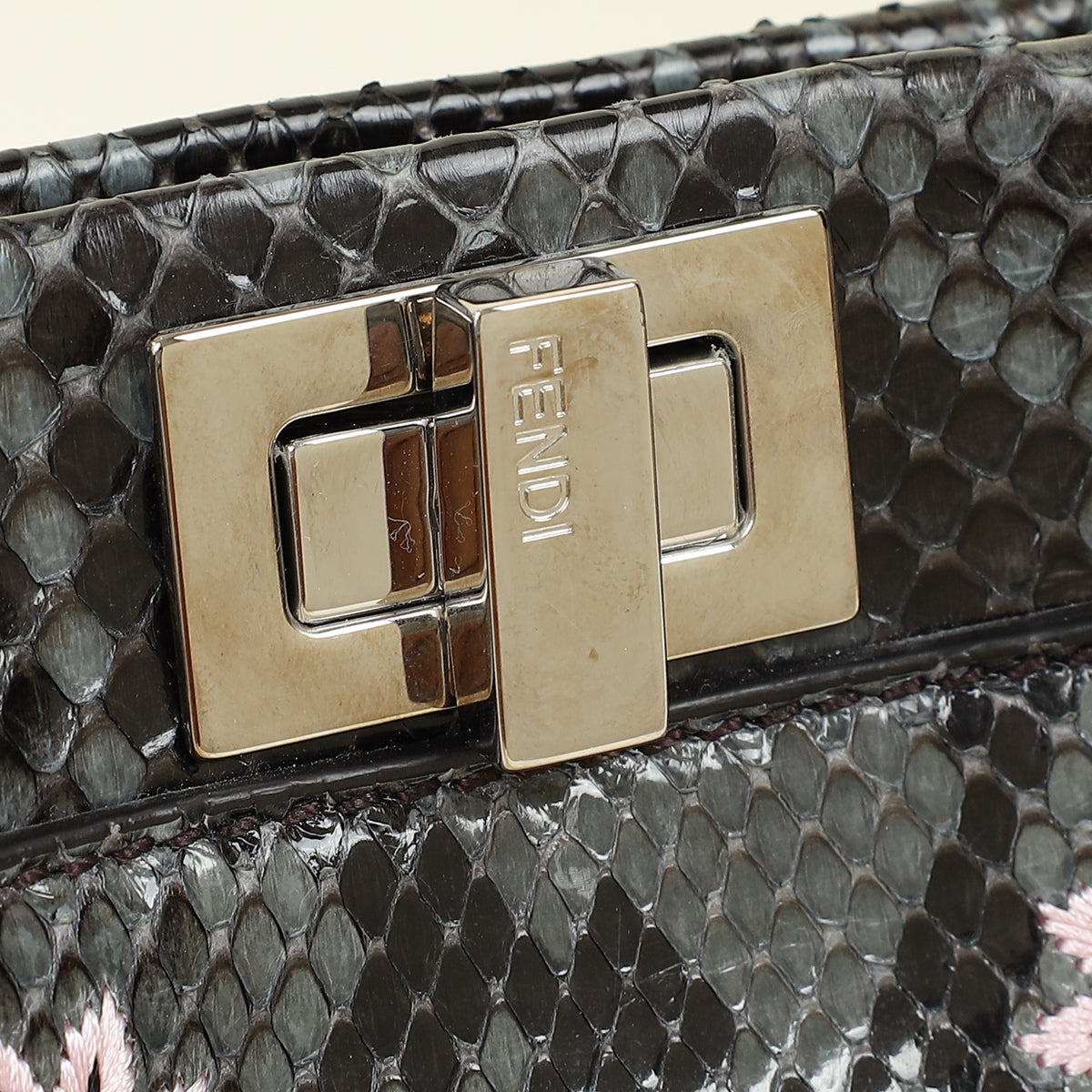 Fendi Dark Grey Peekaboo Mini Whip Python Flower Embroidered Bag