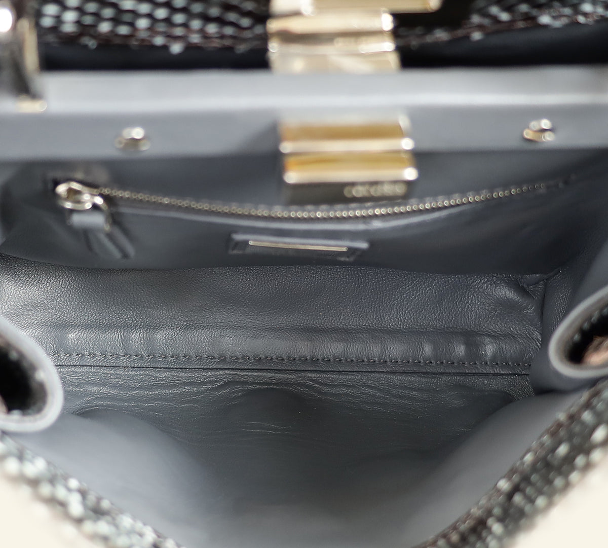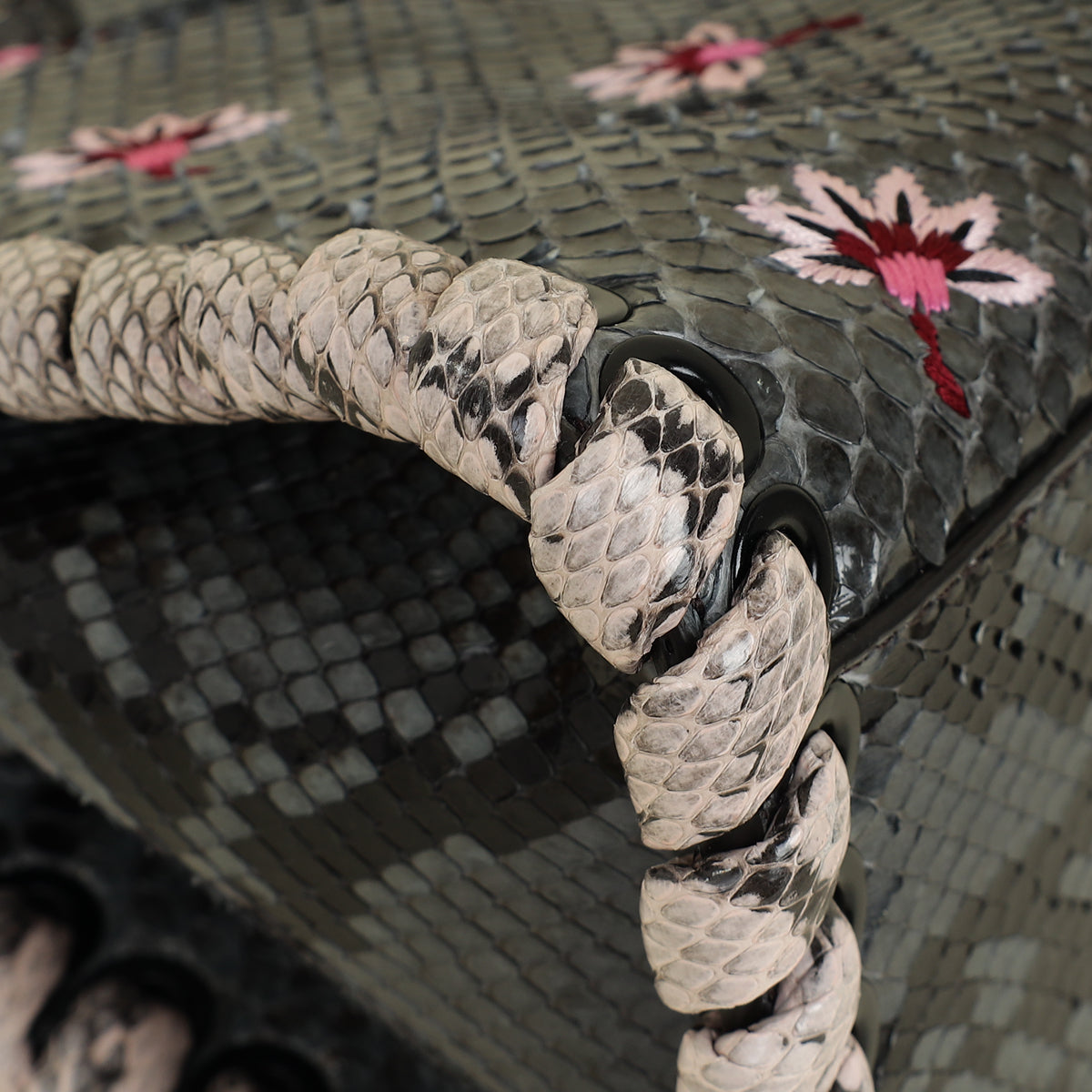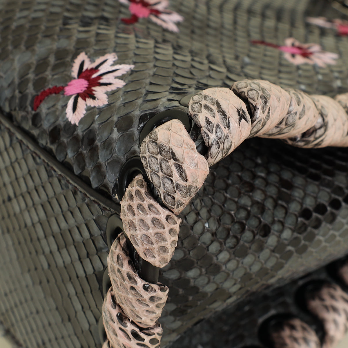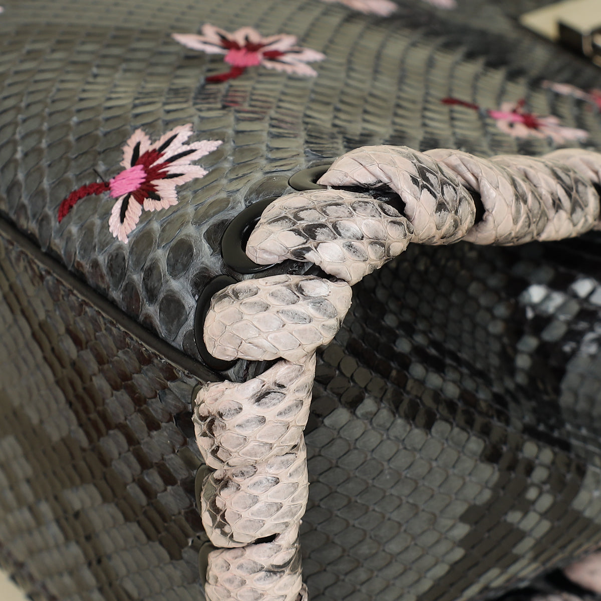 Fendi Dark Grey Peekaboo Mini Whip Python Flower Embroidered Bag