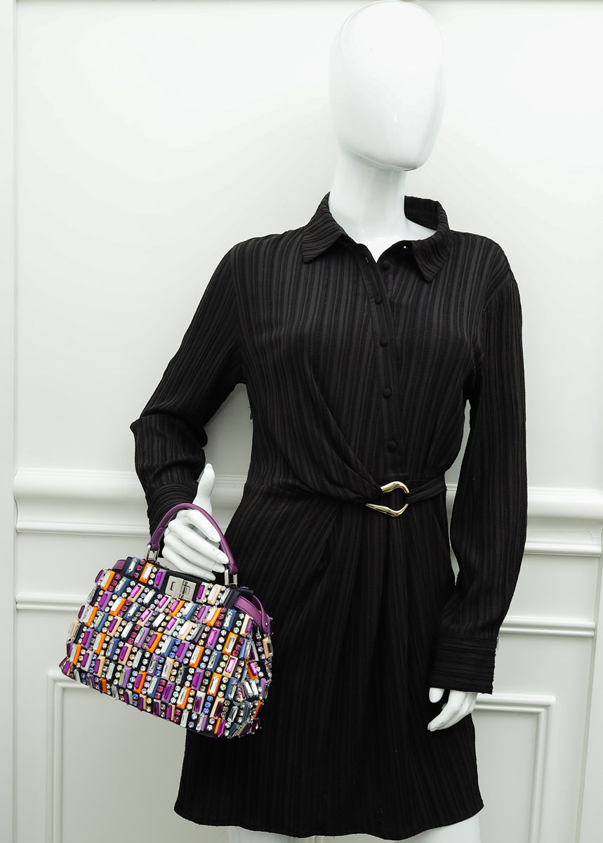 Fendi Purple Multicolor Peekaboo Mini Crystal Embroidered Bag-Fendi-THE CLOSET