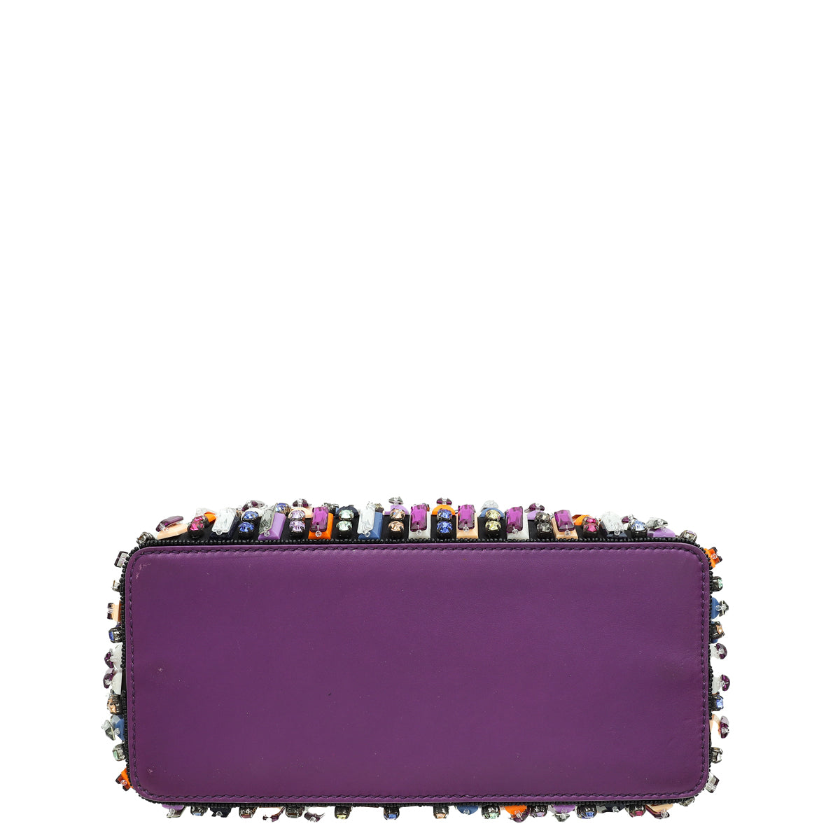 Fendi Purple Multicolor Peekaboo Mini Crystal Embroidered Bag
