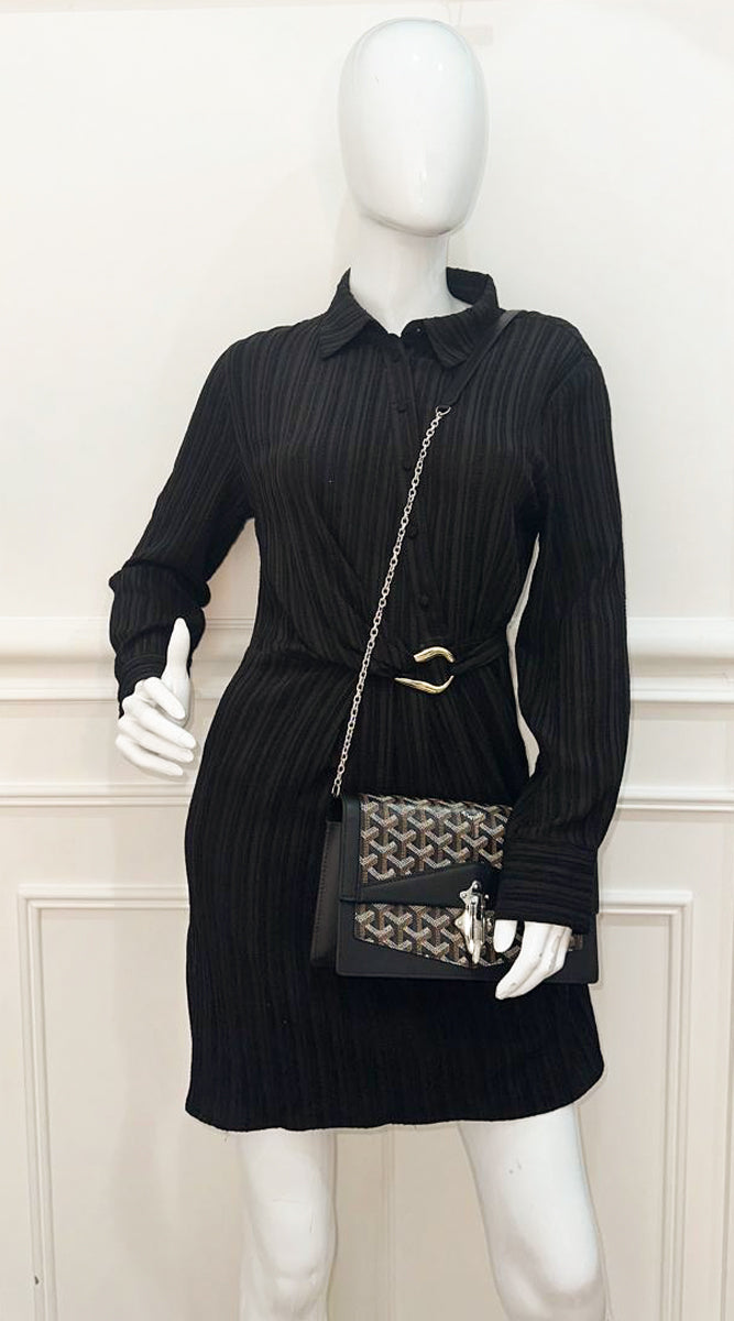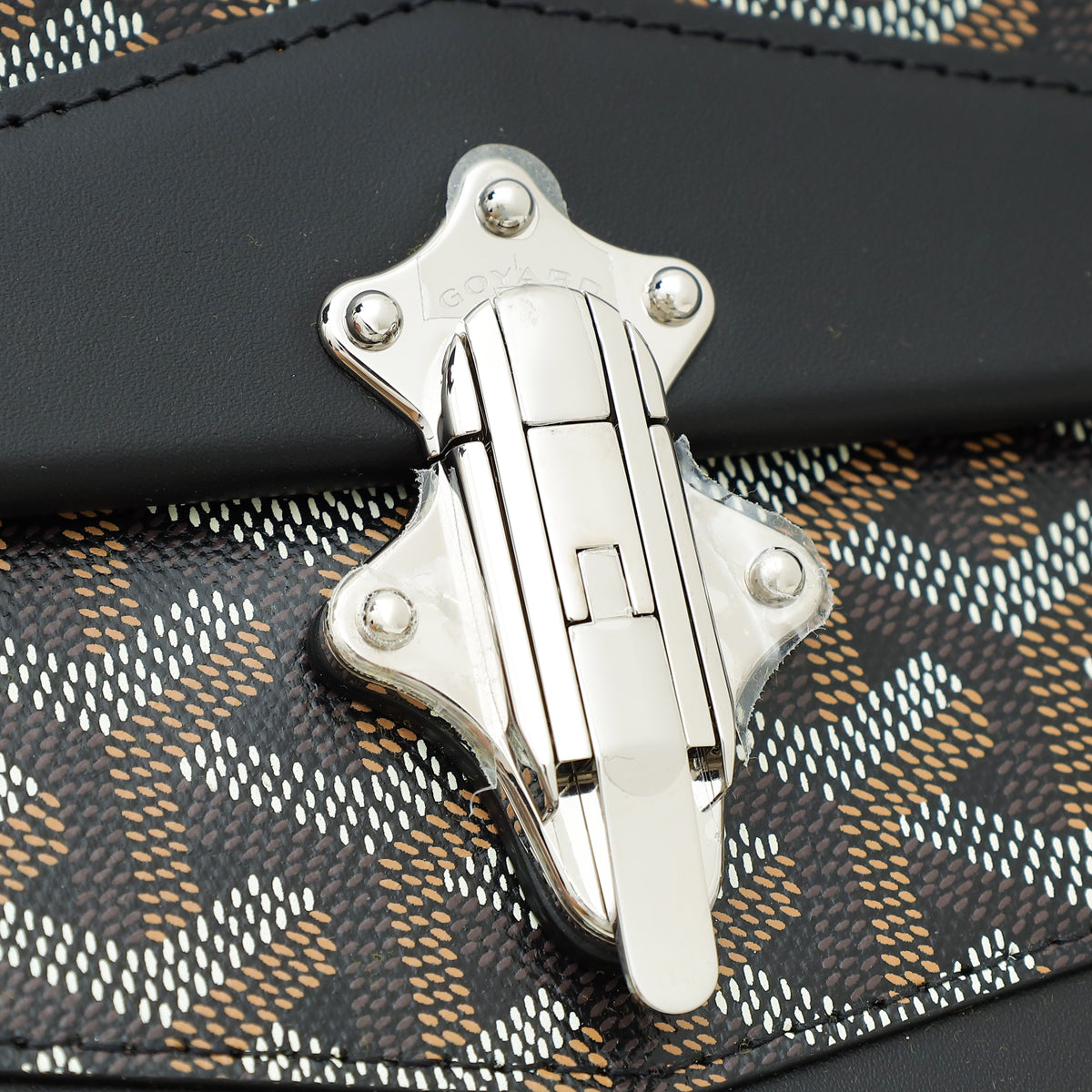 - Material: Black Goyardine Coated Canvas with Smooth Calf Leather Trim