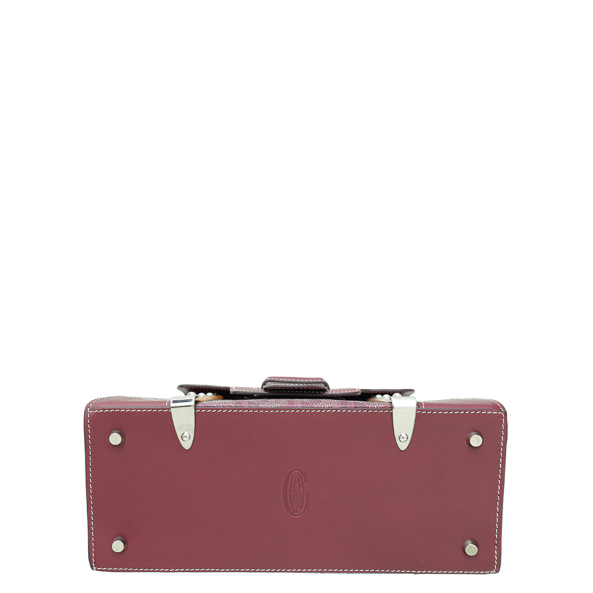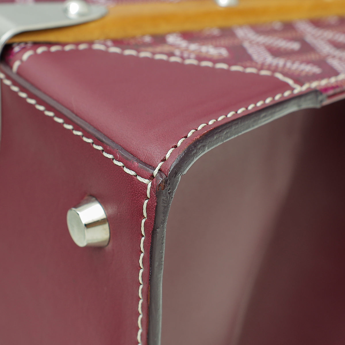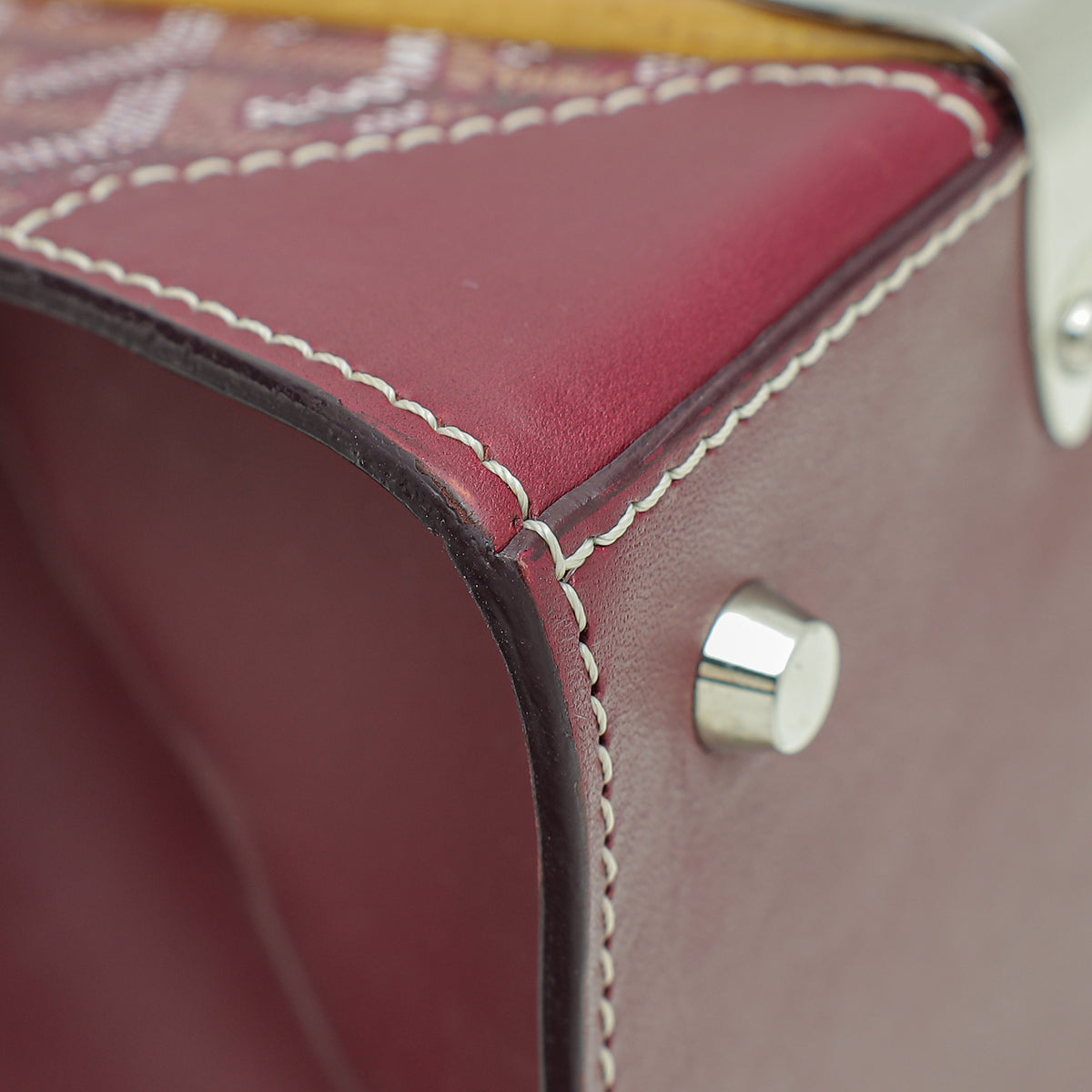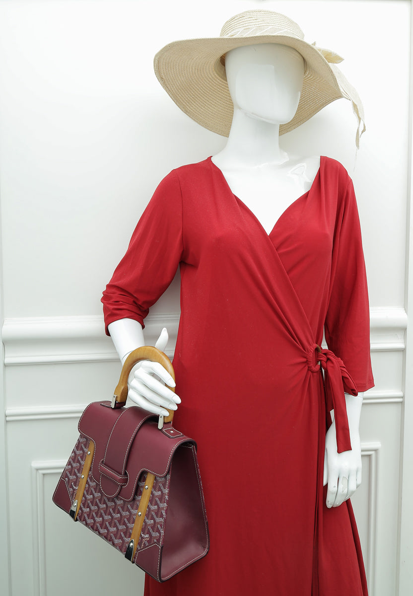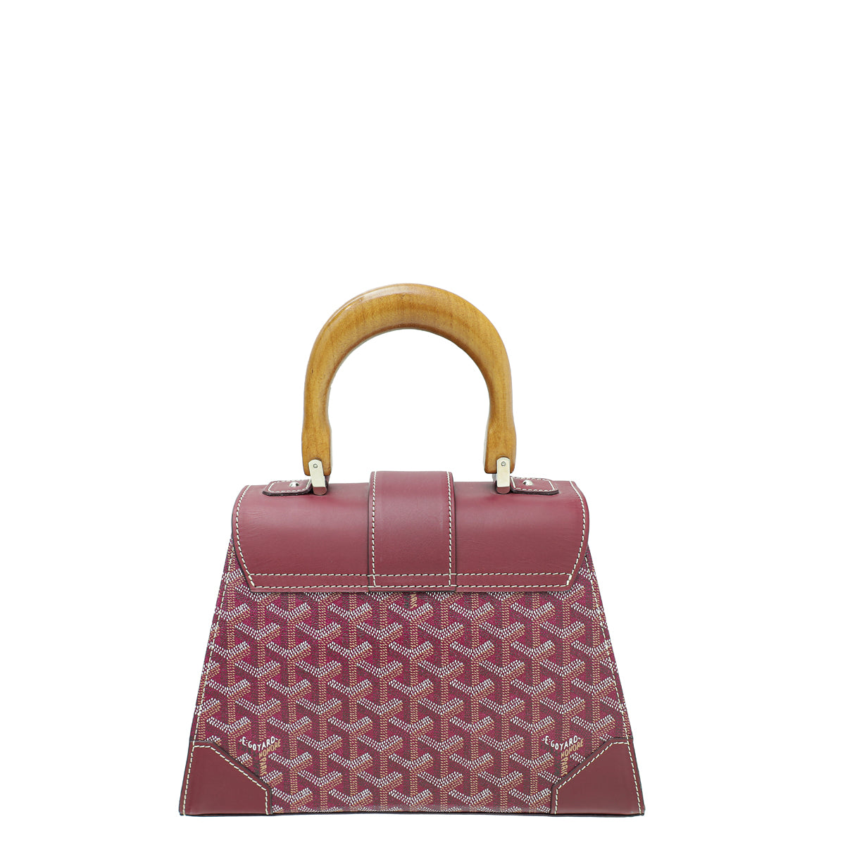 Material: Burgundy Canvas and Tan Leather and Wood Trim