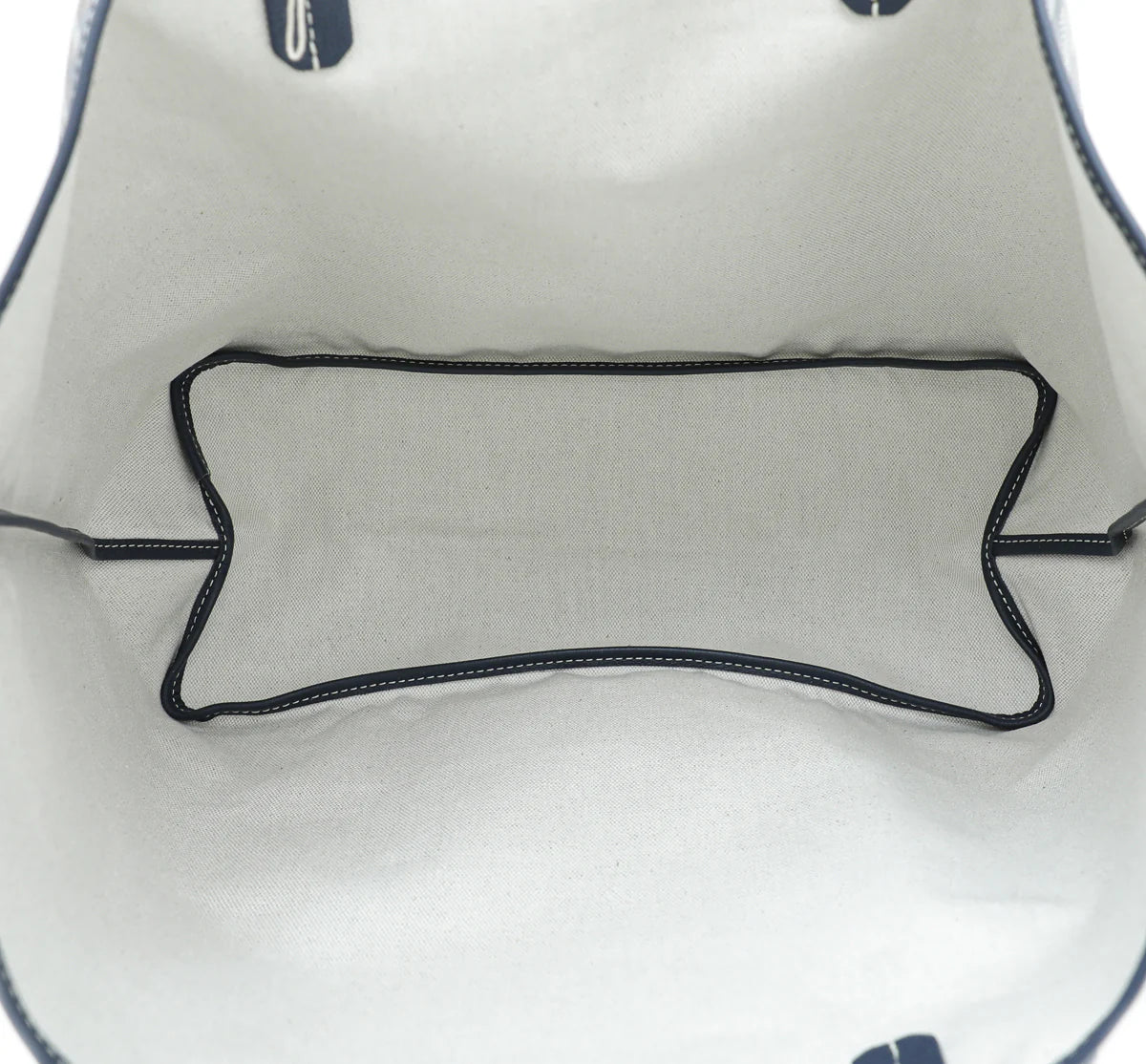 Material: Navy Blue Goyardine Coated Canvas with Leather Trim