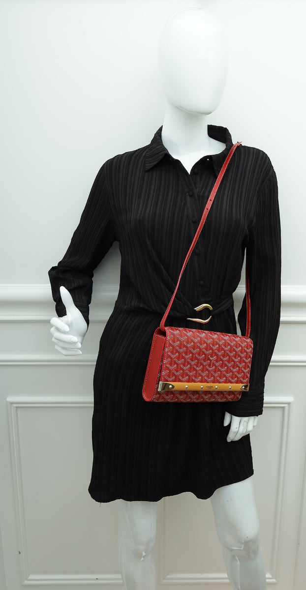 Goyard Red Goyardine Monte Carlo Bois Clutch With Strap