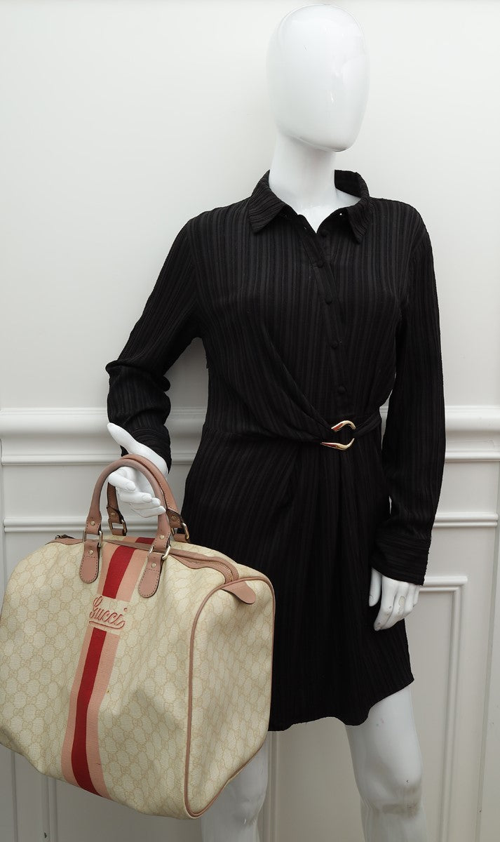 Gucci Beige GG Supreme Script Web Logo Joy Large Boston Bag