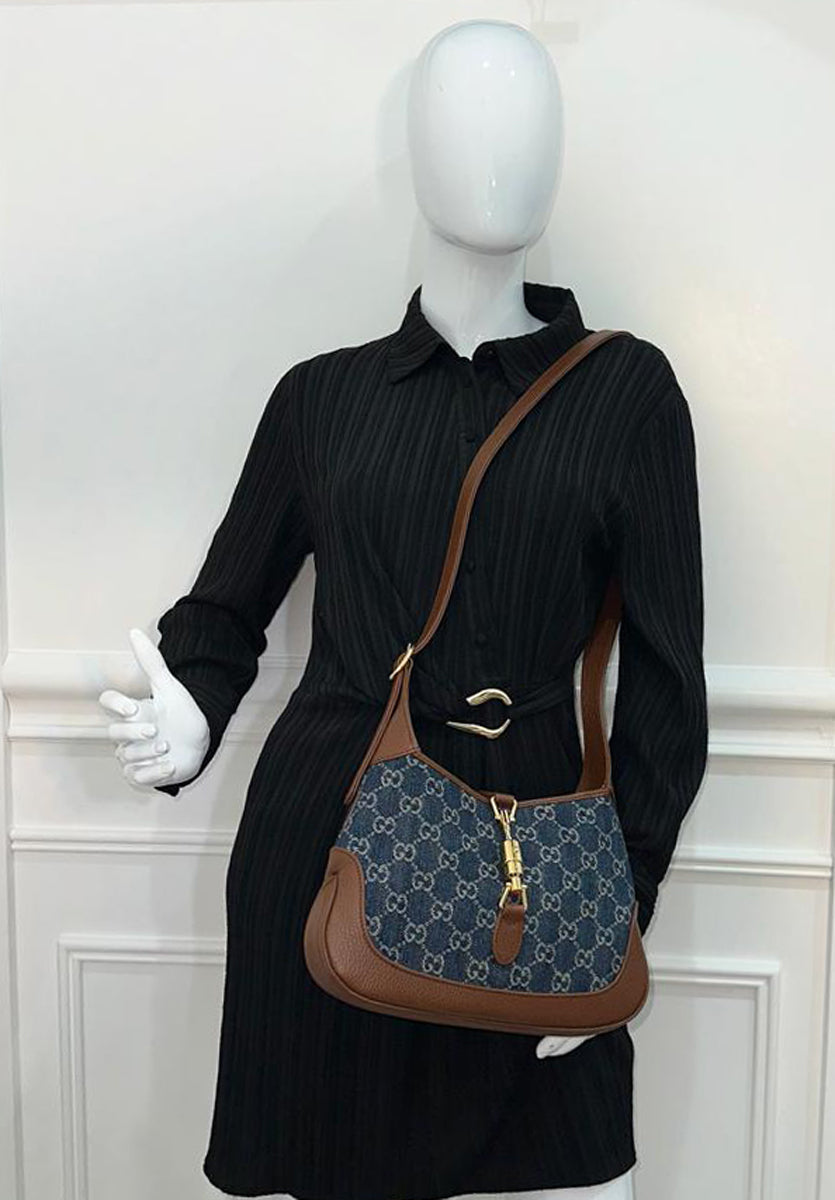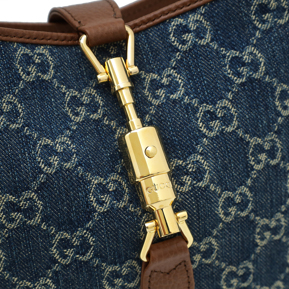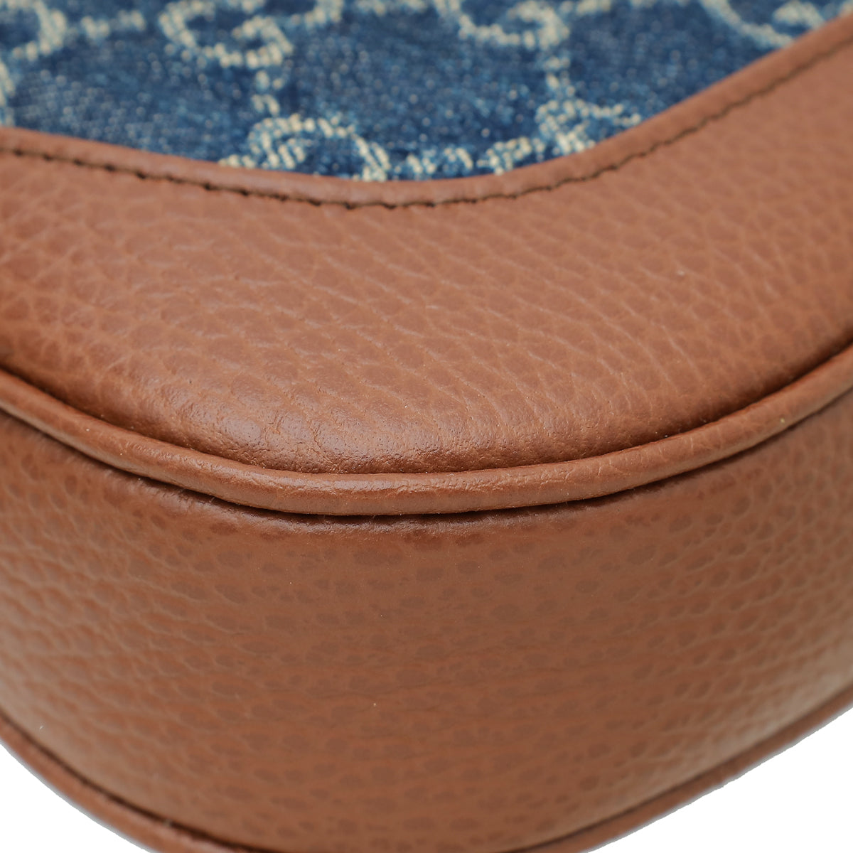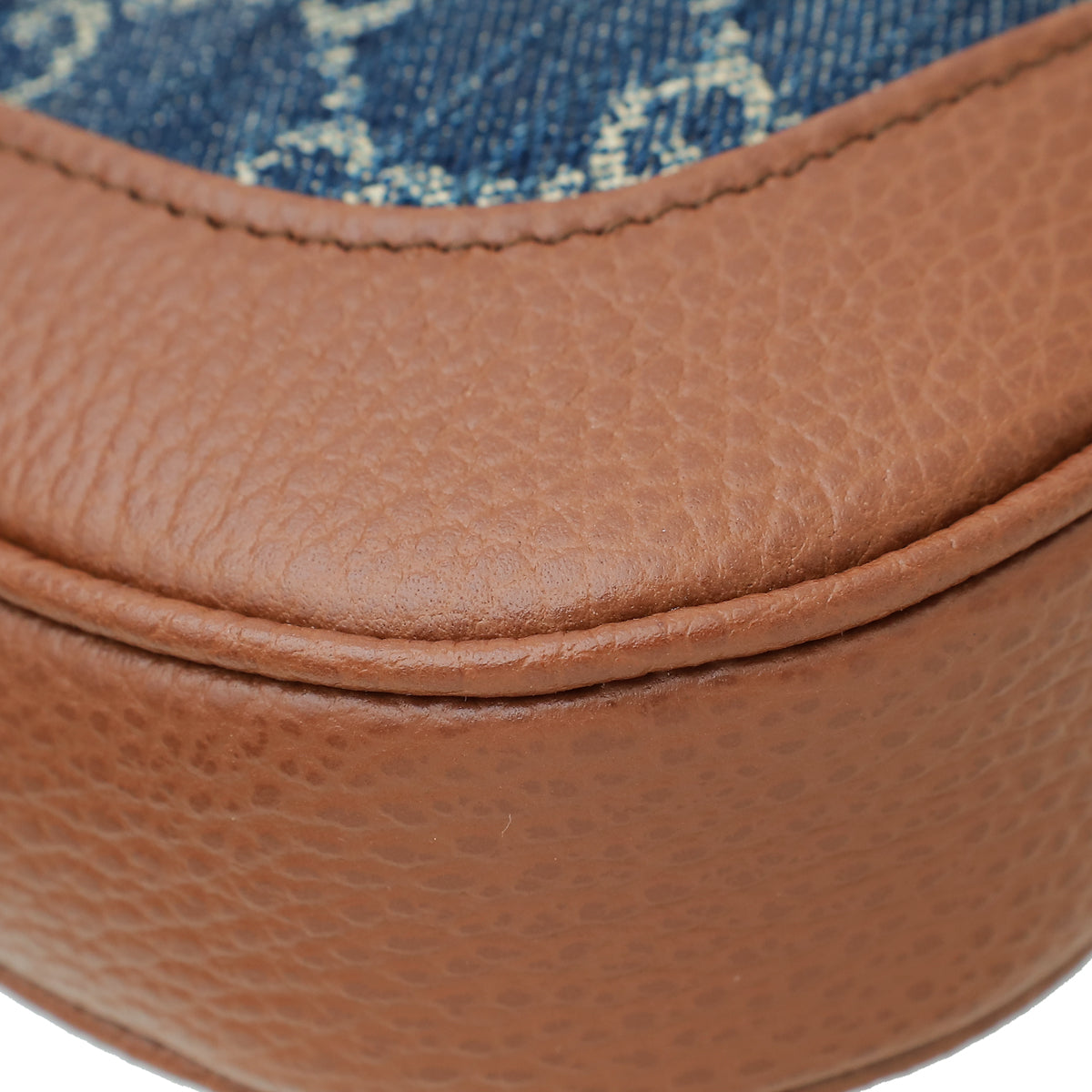 Material: Blue Denim and Brown Grained Calfskin Leather