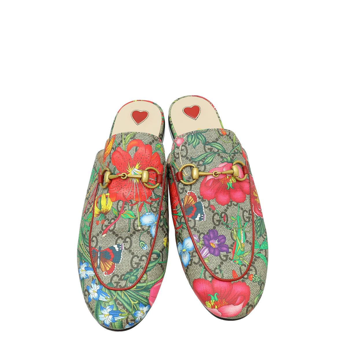 Gucci Bicolor GG Supreme Floral Princetown Mules 38