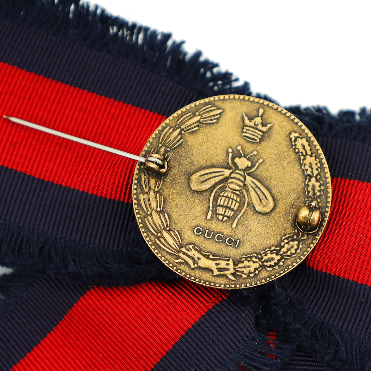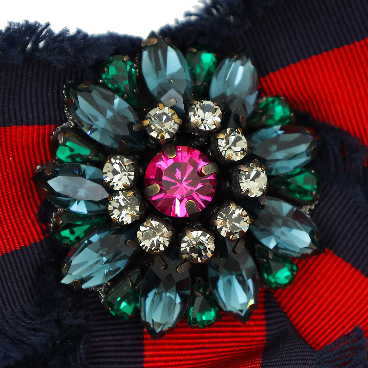 Gucci Bicolor Grosgrain Web Crystal Bow Brooch
