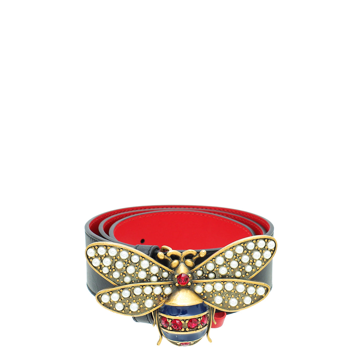 Gucci Bicolor Queen Margaret Bee Belt 30
