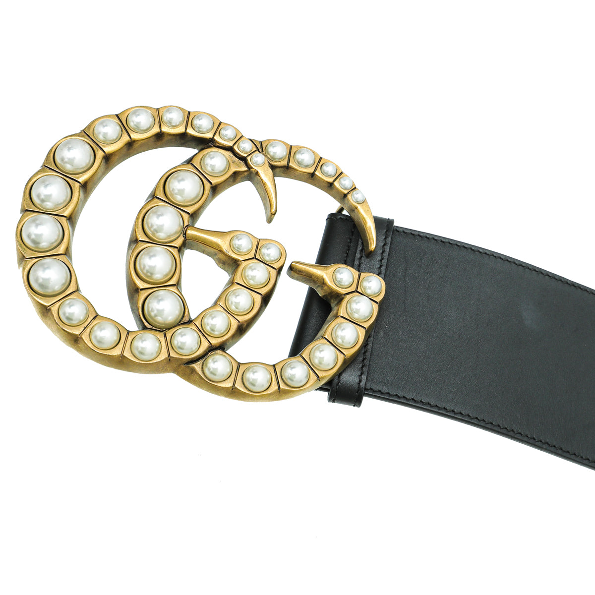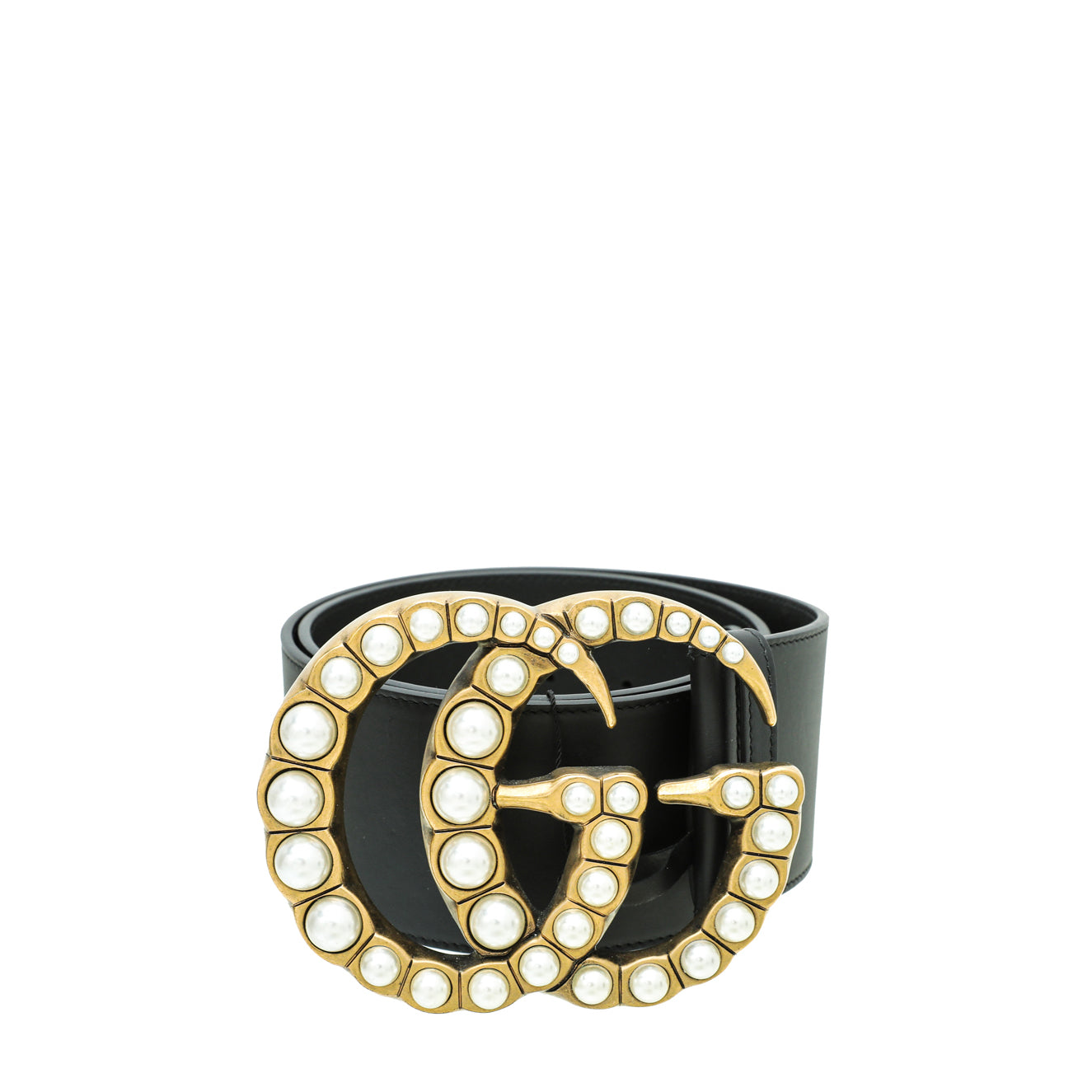 Material: Black Leather and Double G Buckle with Pearls