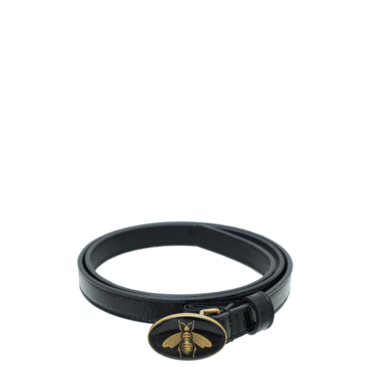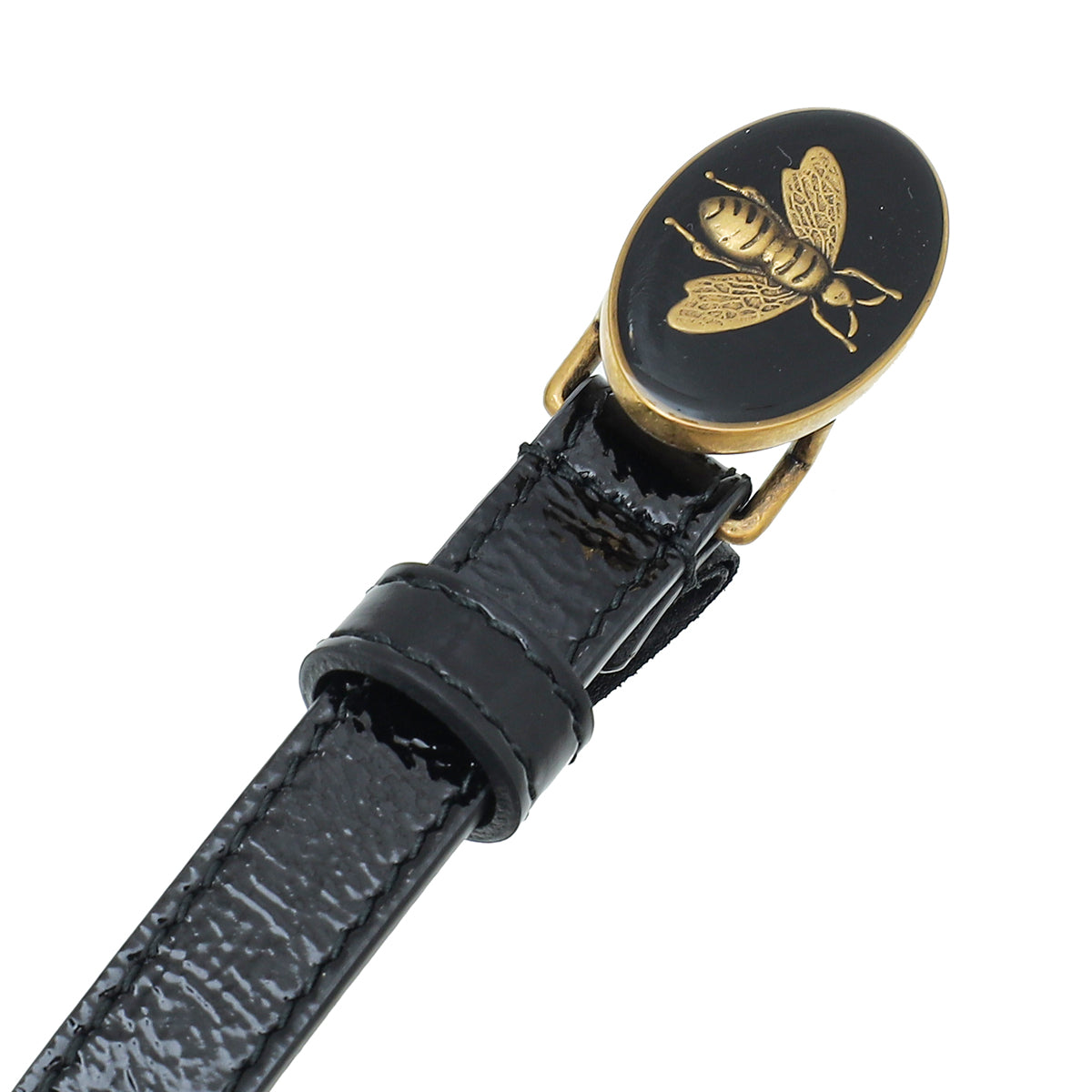 Material: Black Shiny Calf Leather and Black Enamel with Bee