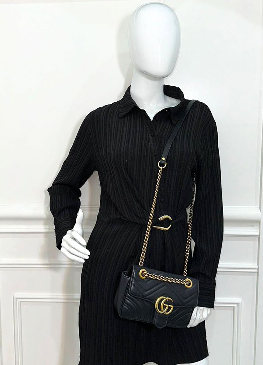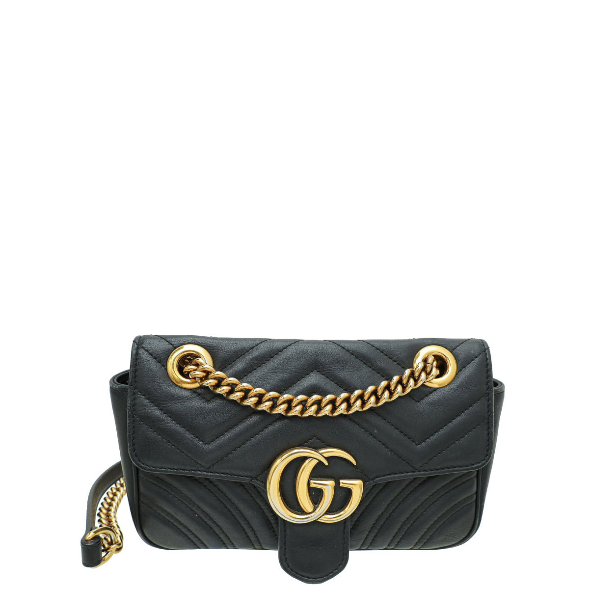 Gucci Black GG Marmont Flap Mini Shoulder Bag
