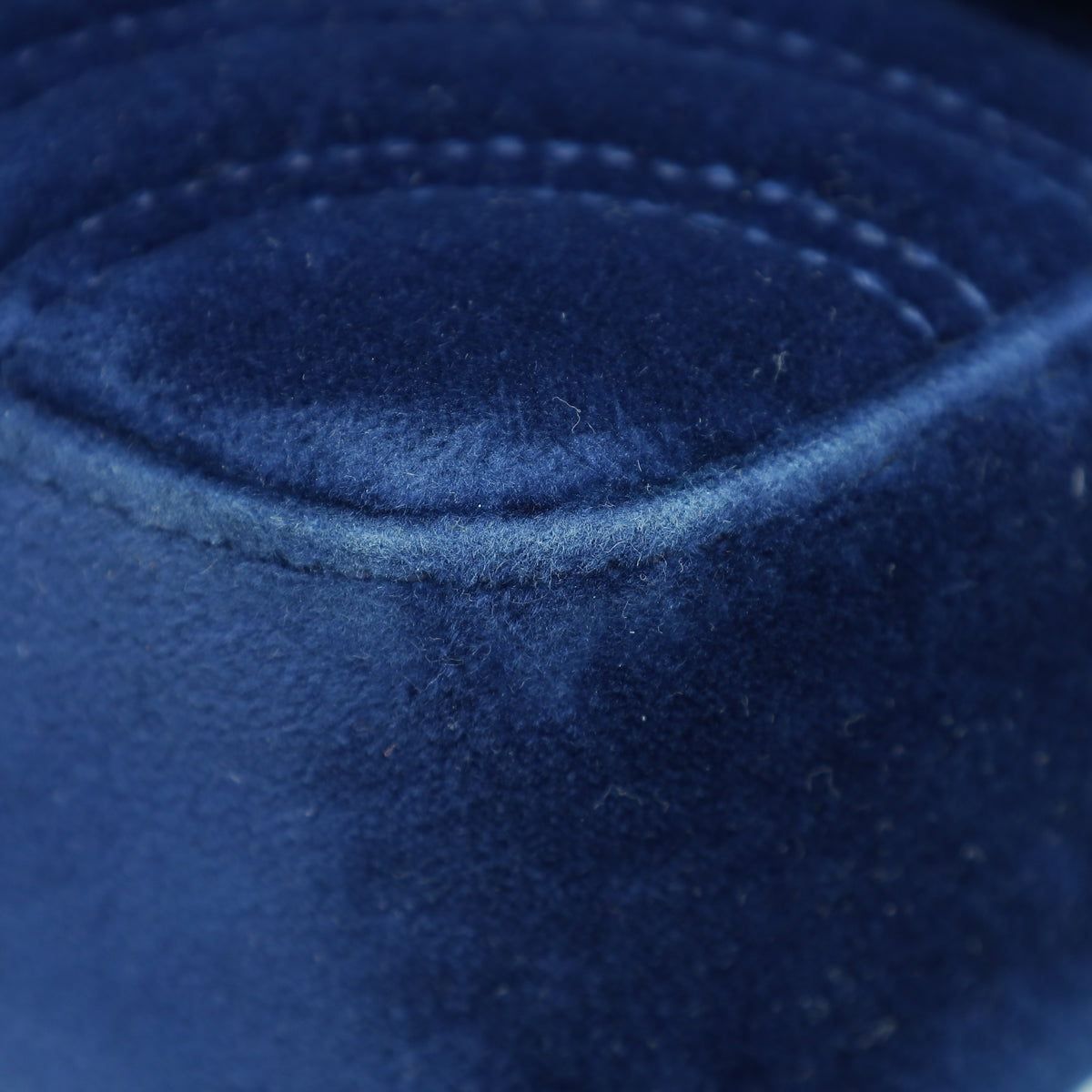 Exterior: good condition, with fine scratches on the hardware, scratches on velvet and showing normal signs of use.