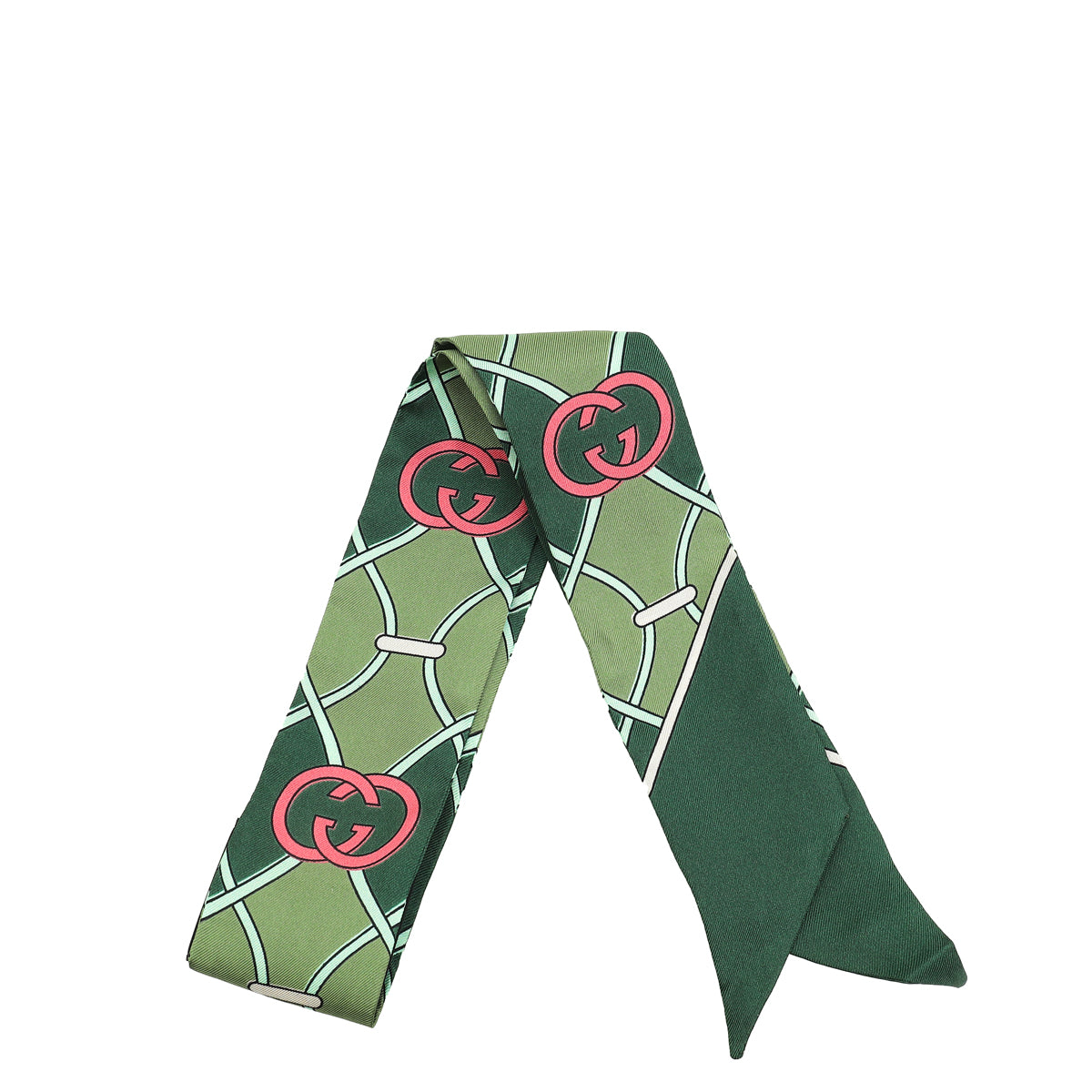 Gucci Green Multicolor Interlocking-G Silk Twilly