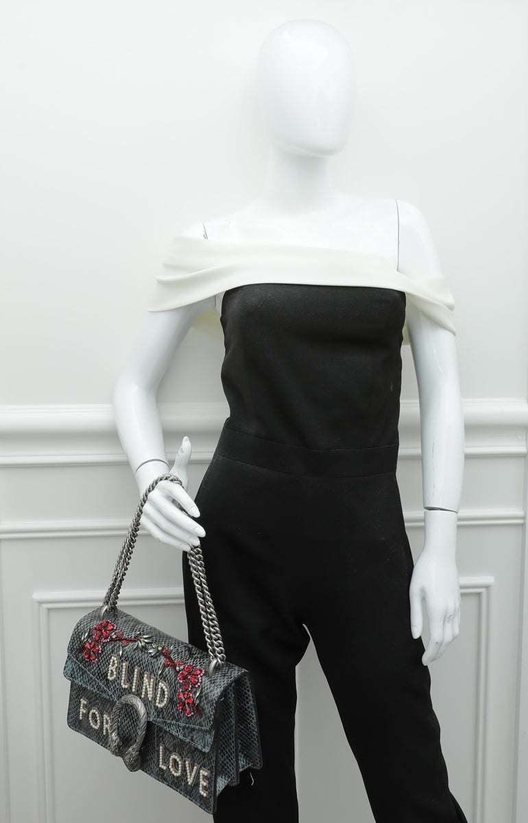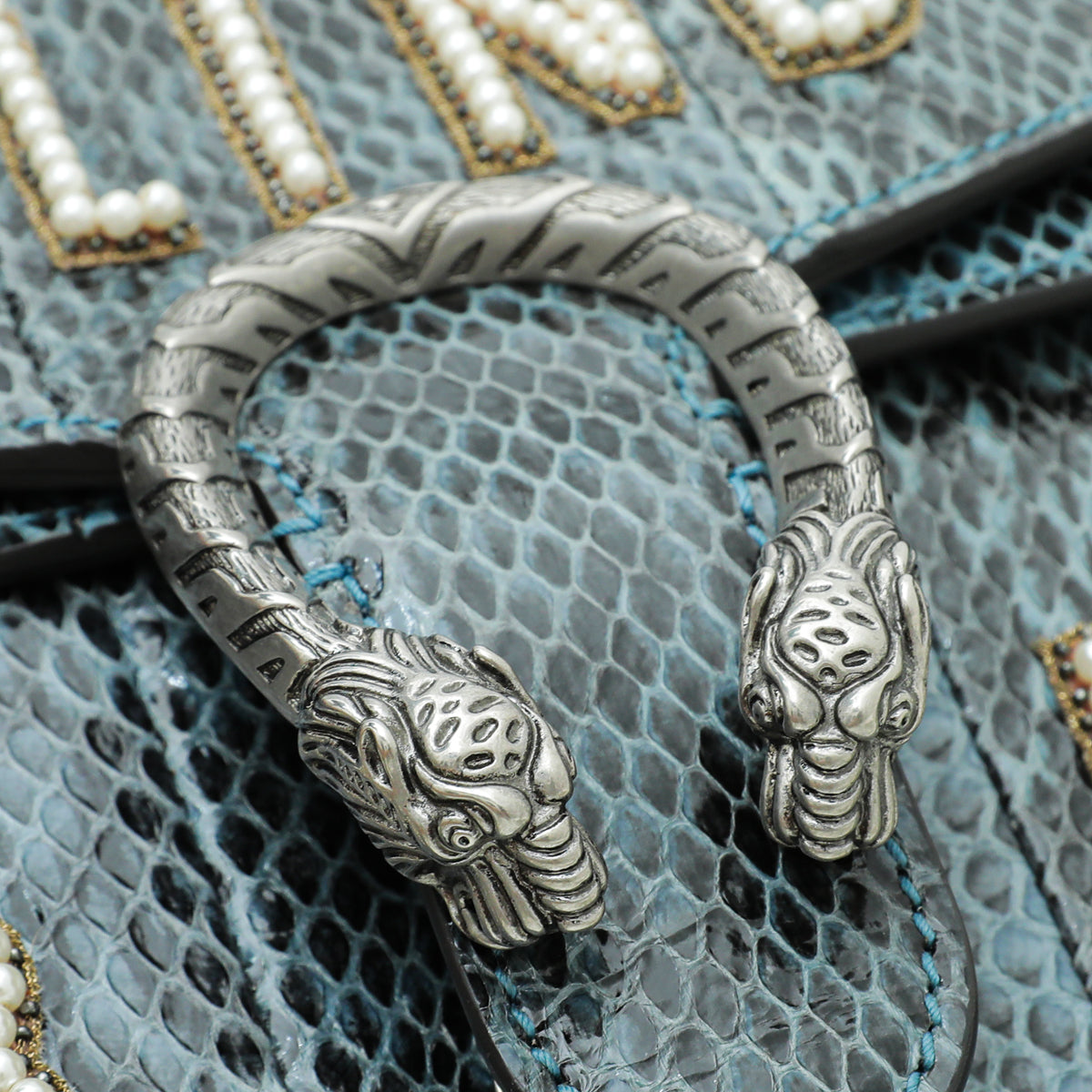 Gucci Marine Blue Python Crystal Embellished "Blind for Love" Dionysus Bag