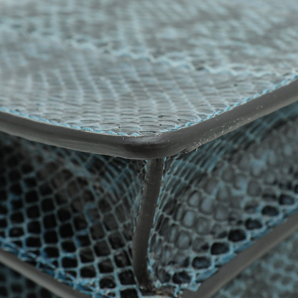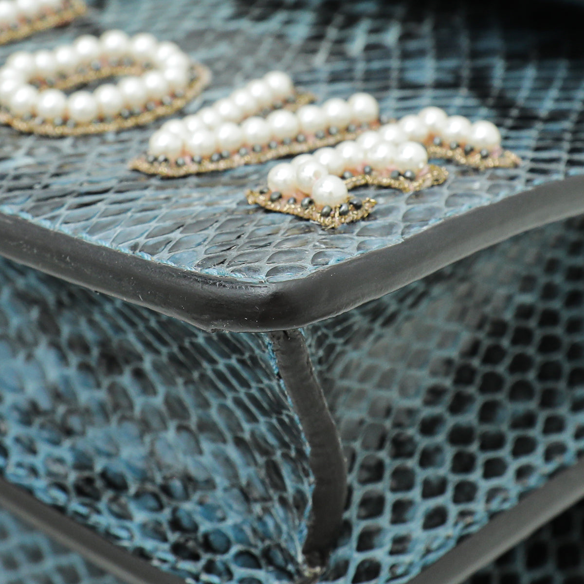 Material: Marine Blue Python Leather with Floral Crystals and "Blind For Love" Written with Faux Pearls