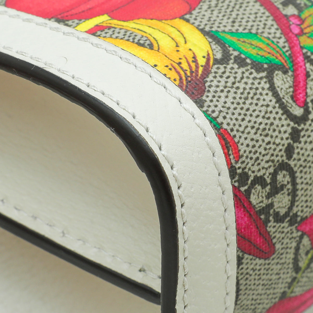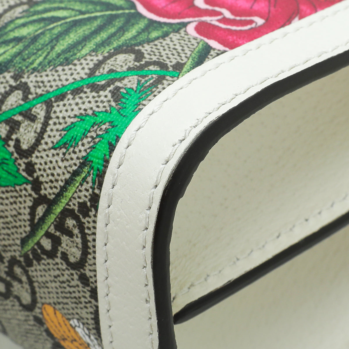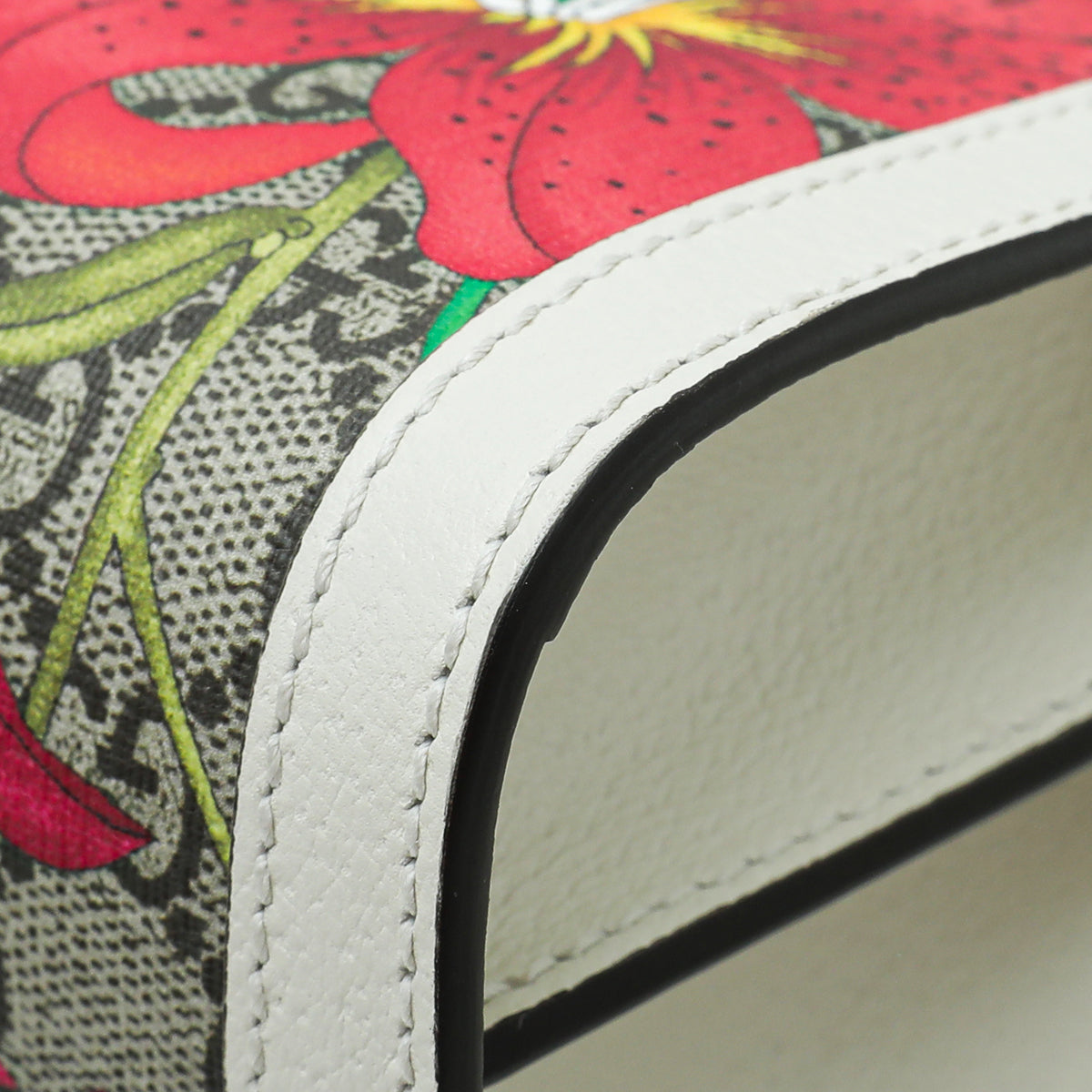 Material: Ebony GG Coated Canvas with Multicolor Flora and Green/Red Web and White Leather Trim