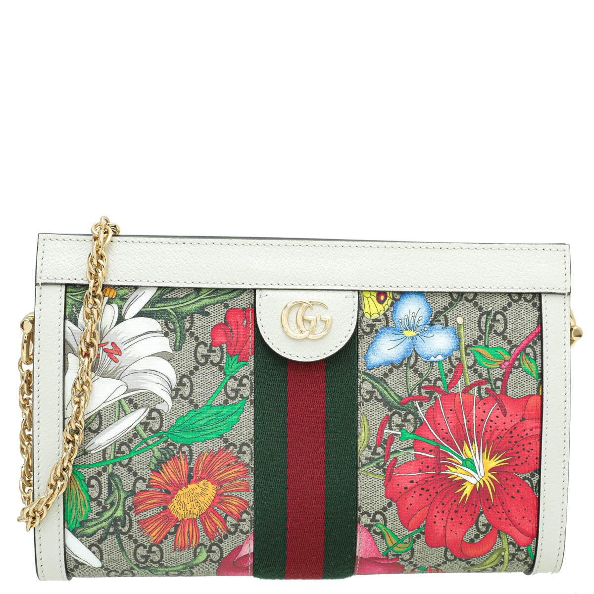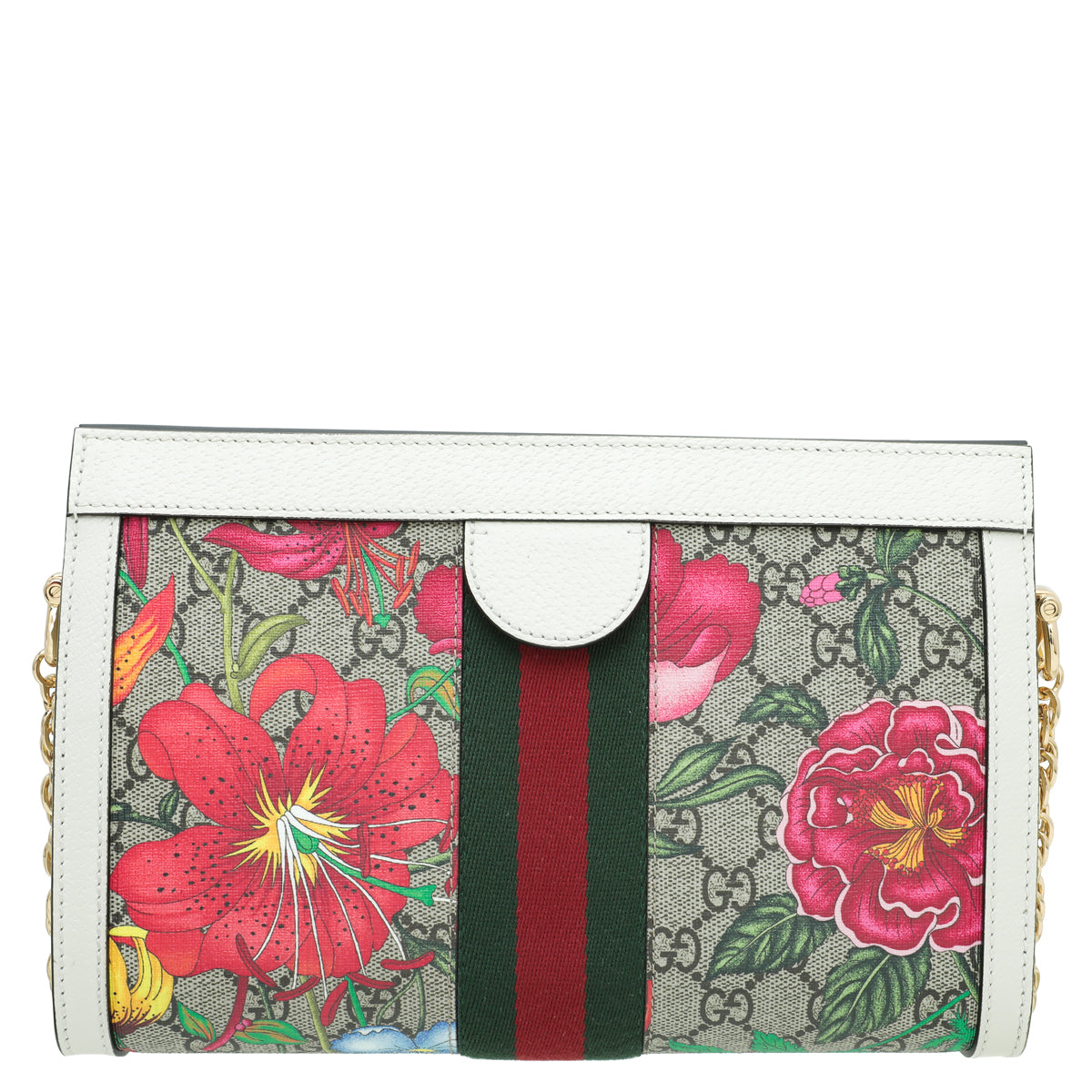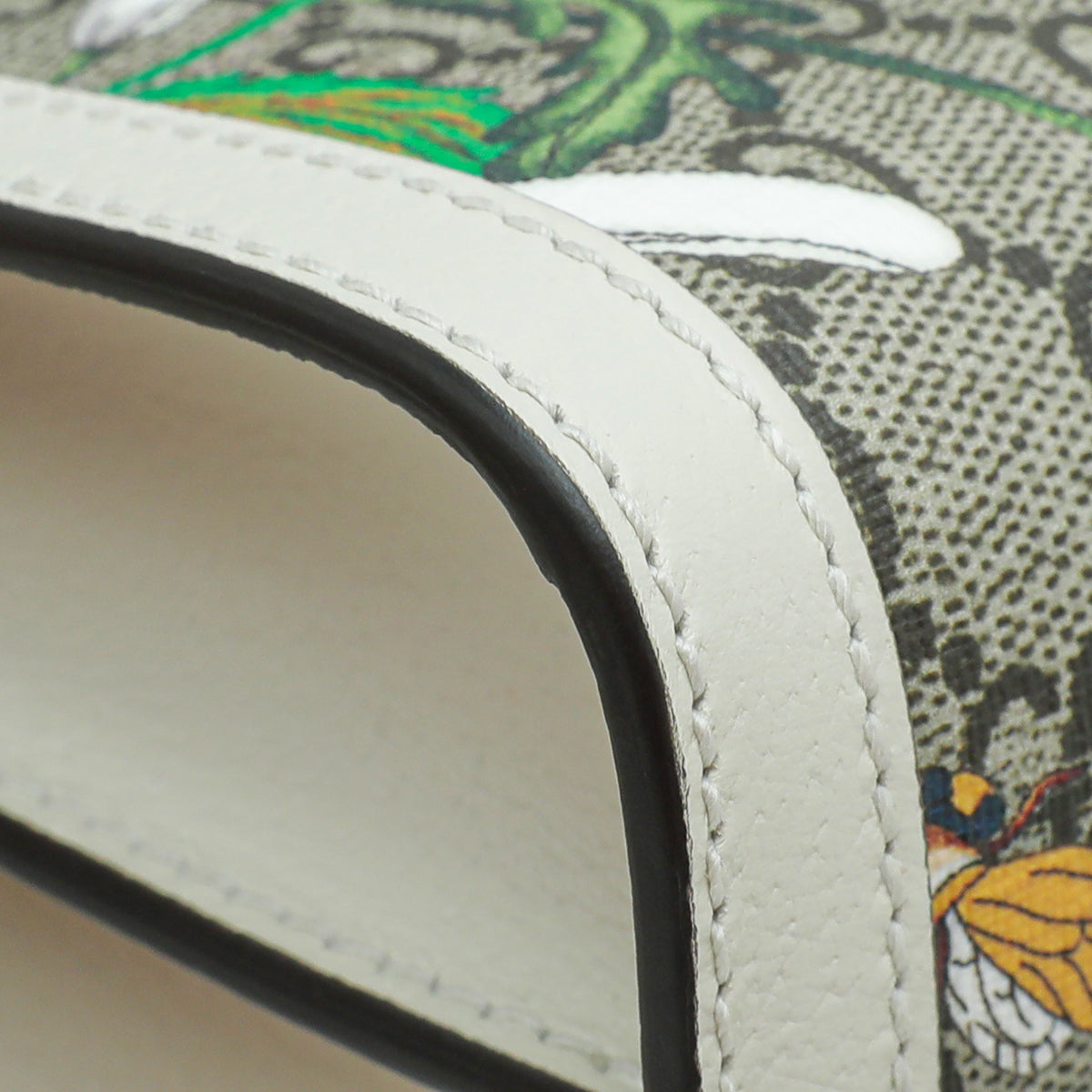 Material: Ebony GG Coated Canvas with Multicolor Flora and Green/Red Web and White Leather Trim