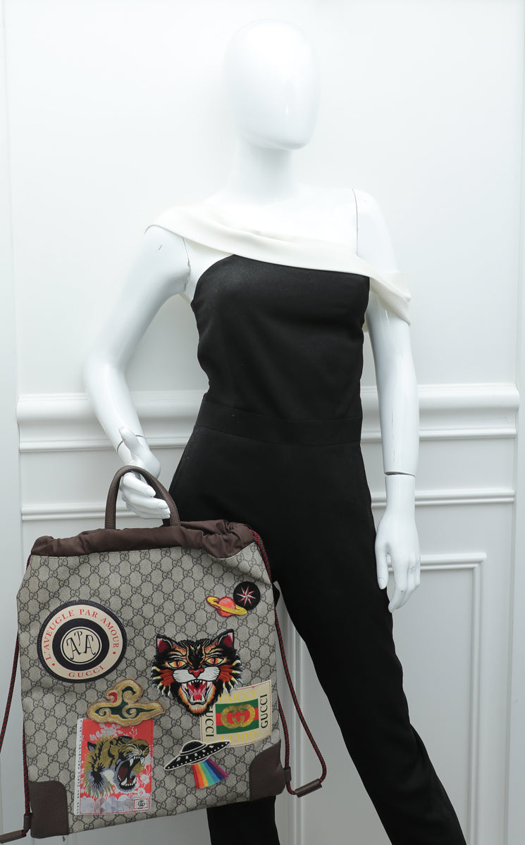 Gucci Multicolor Soft GG Supreme Courier Drawstring Backpack Bag