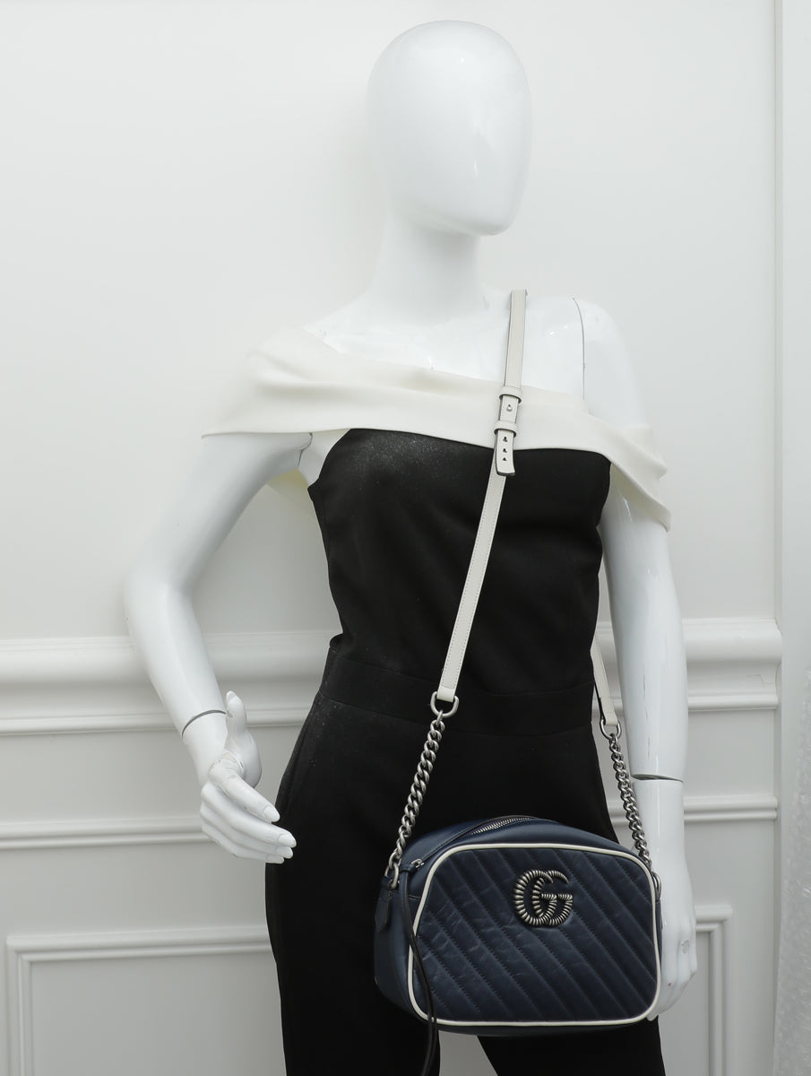 Gucci Navy Blue GG Marmont Small Camera Shoulder Bag