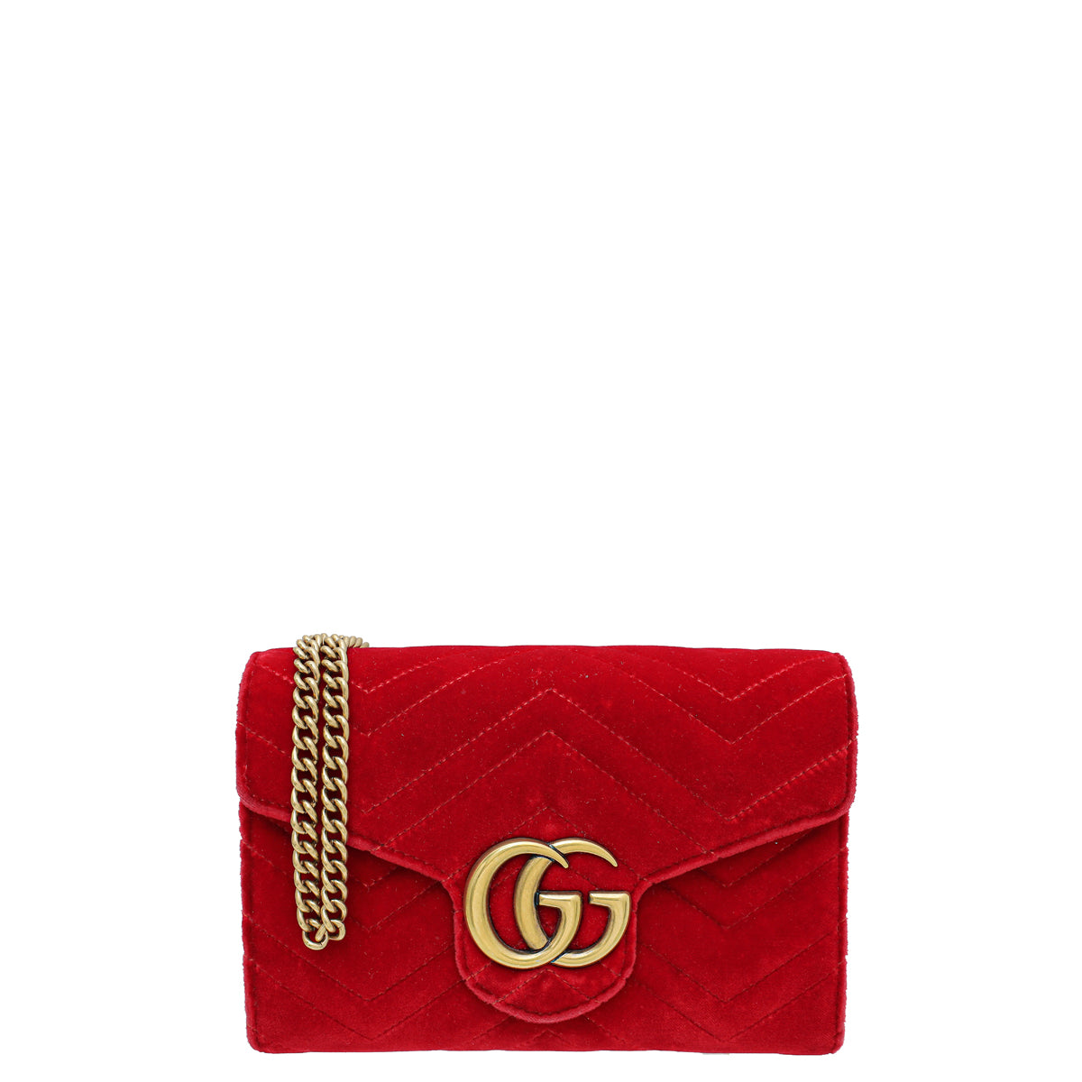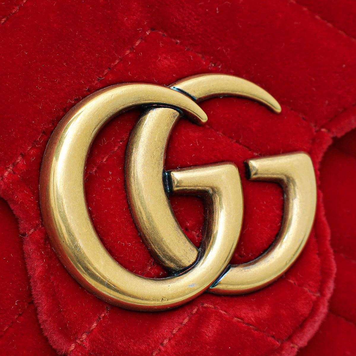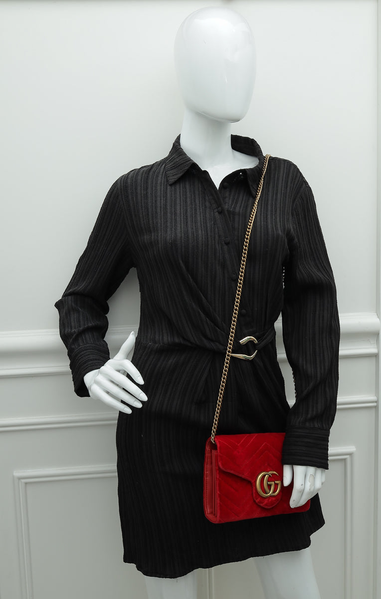 Gucci Red Velvet GG Marmont Mini Shoulder Bag