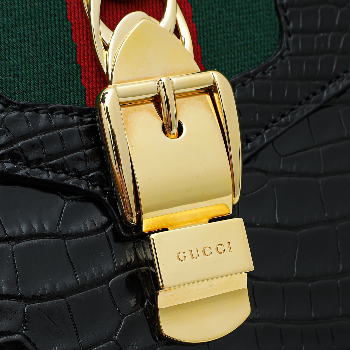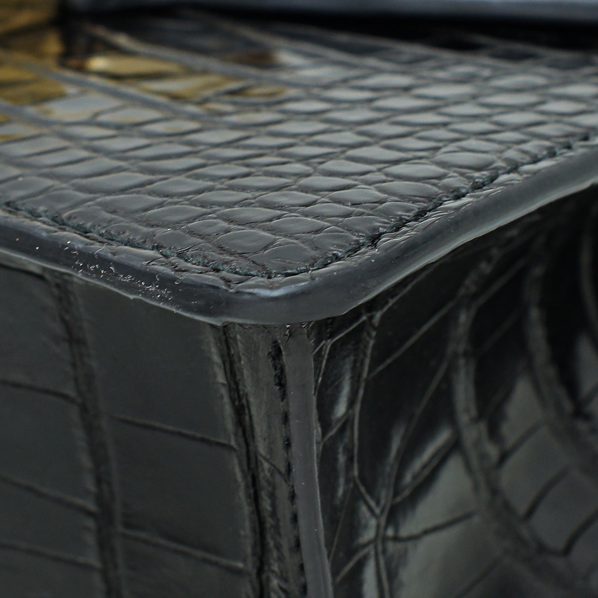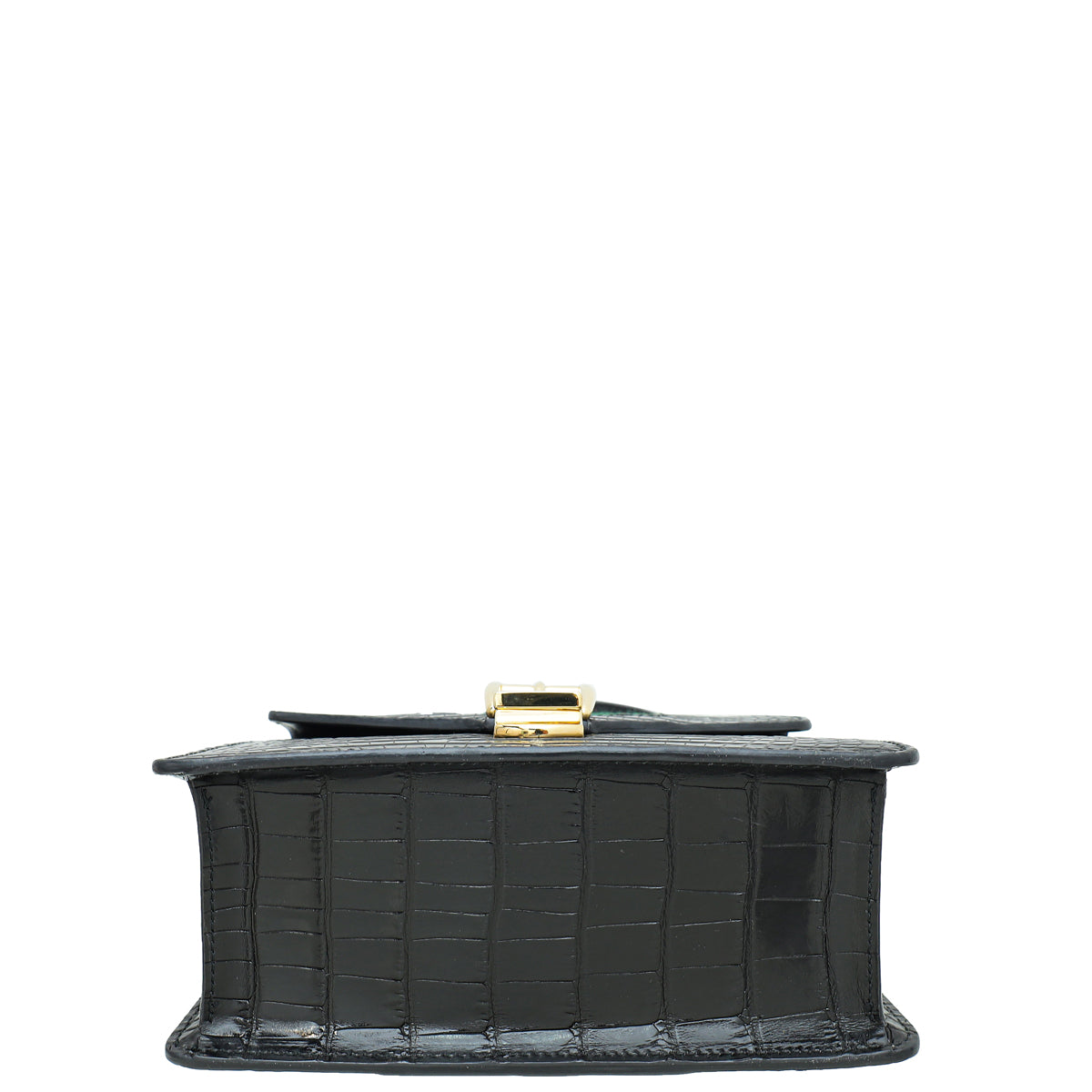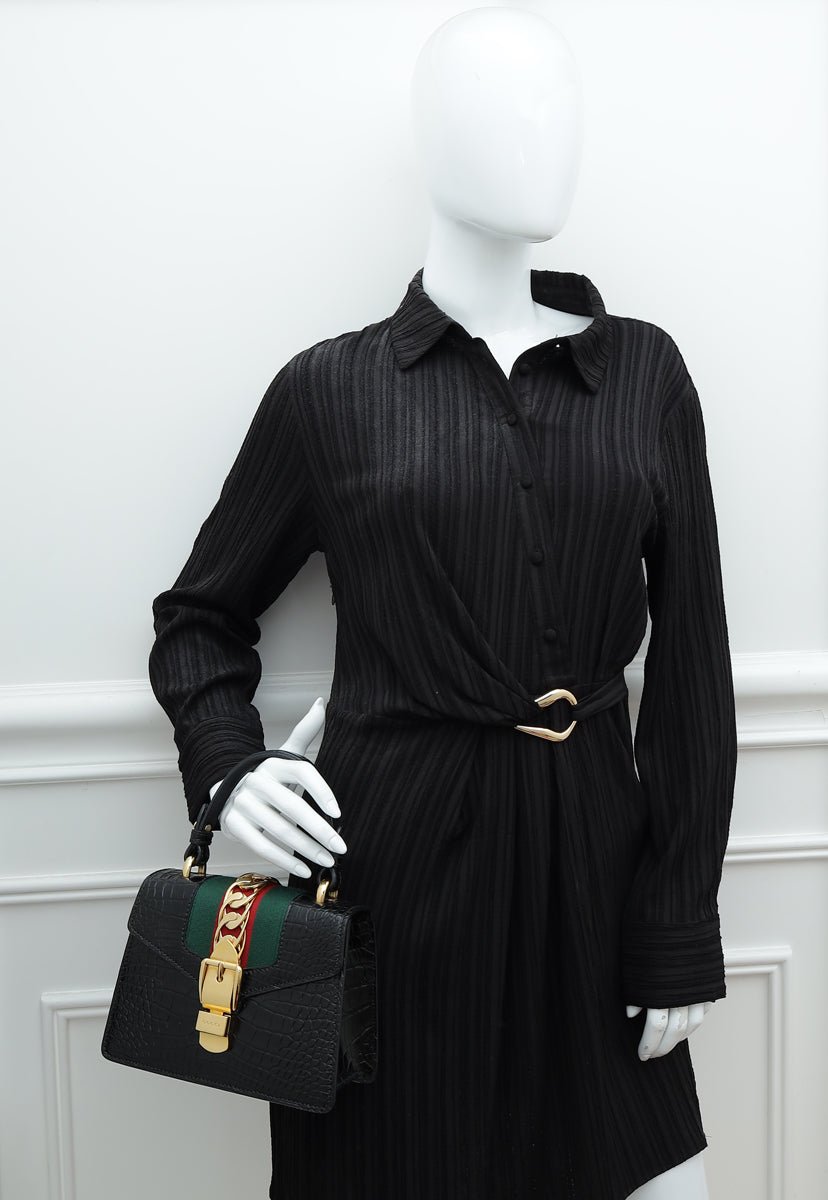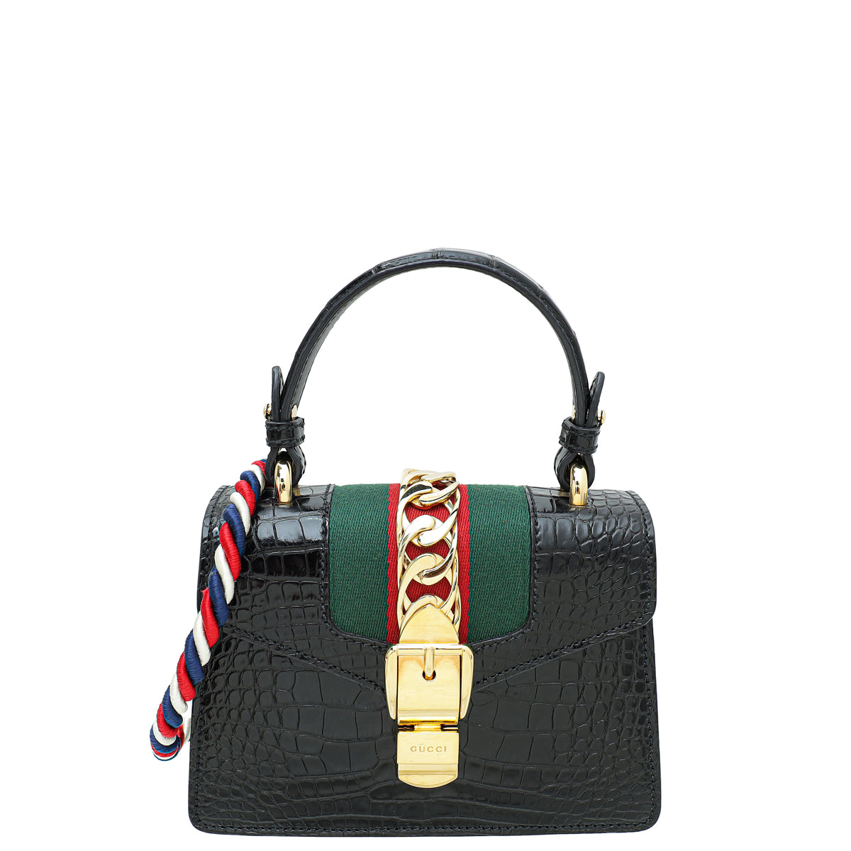 Gucci Shiny Black Alligator Sylvie Mini Top Handle Bag