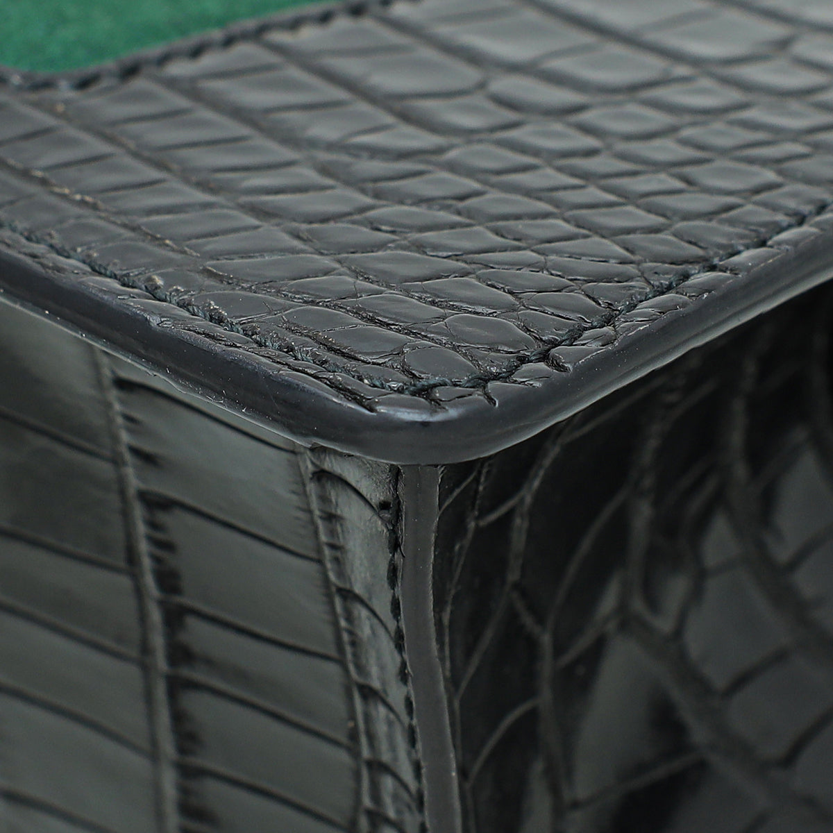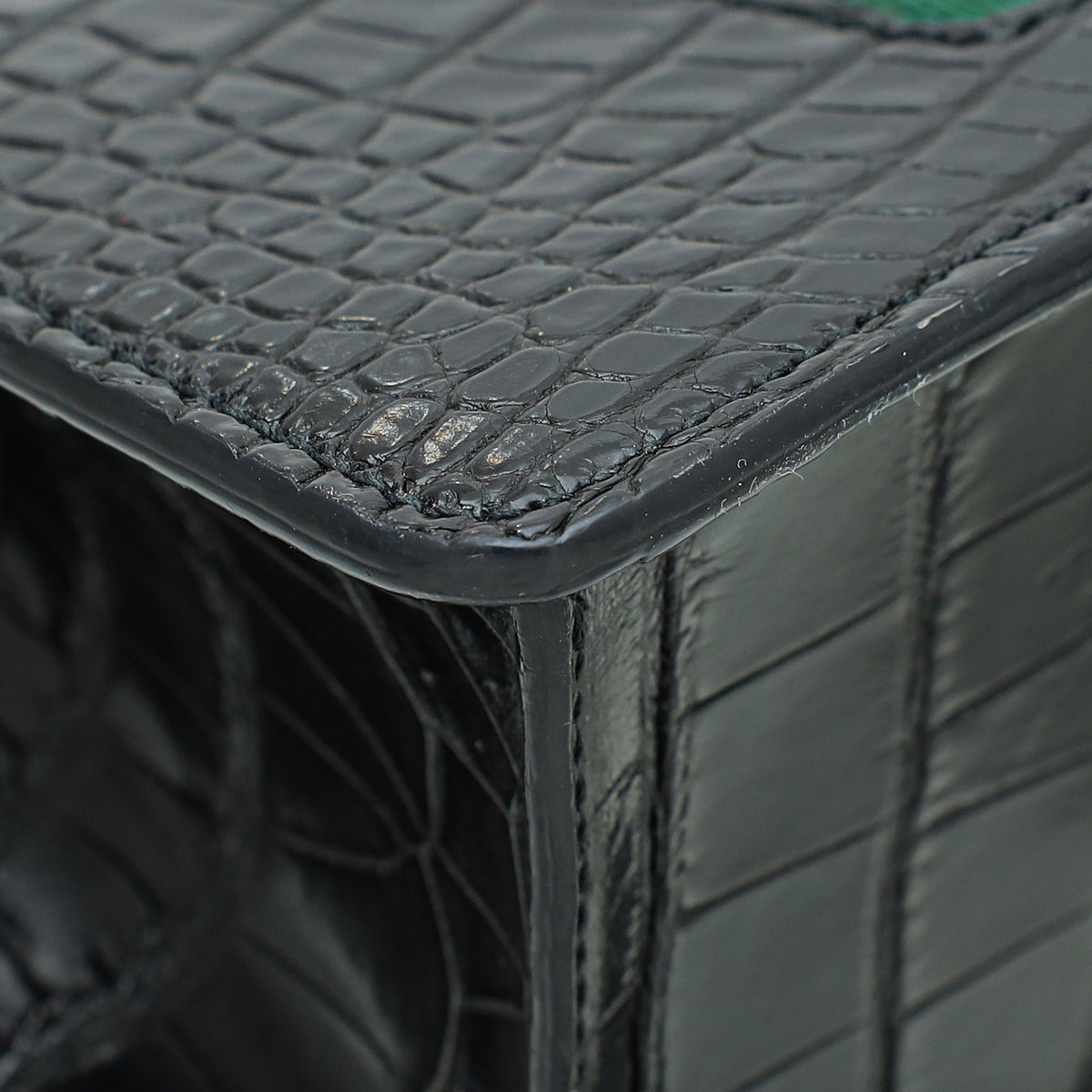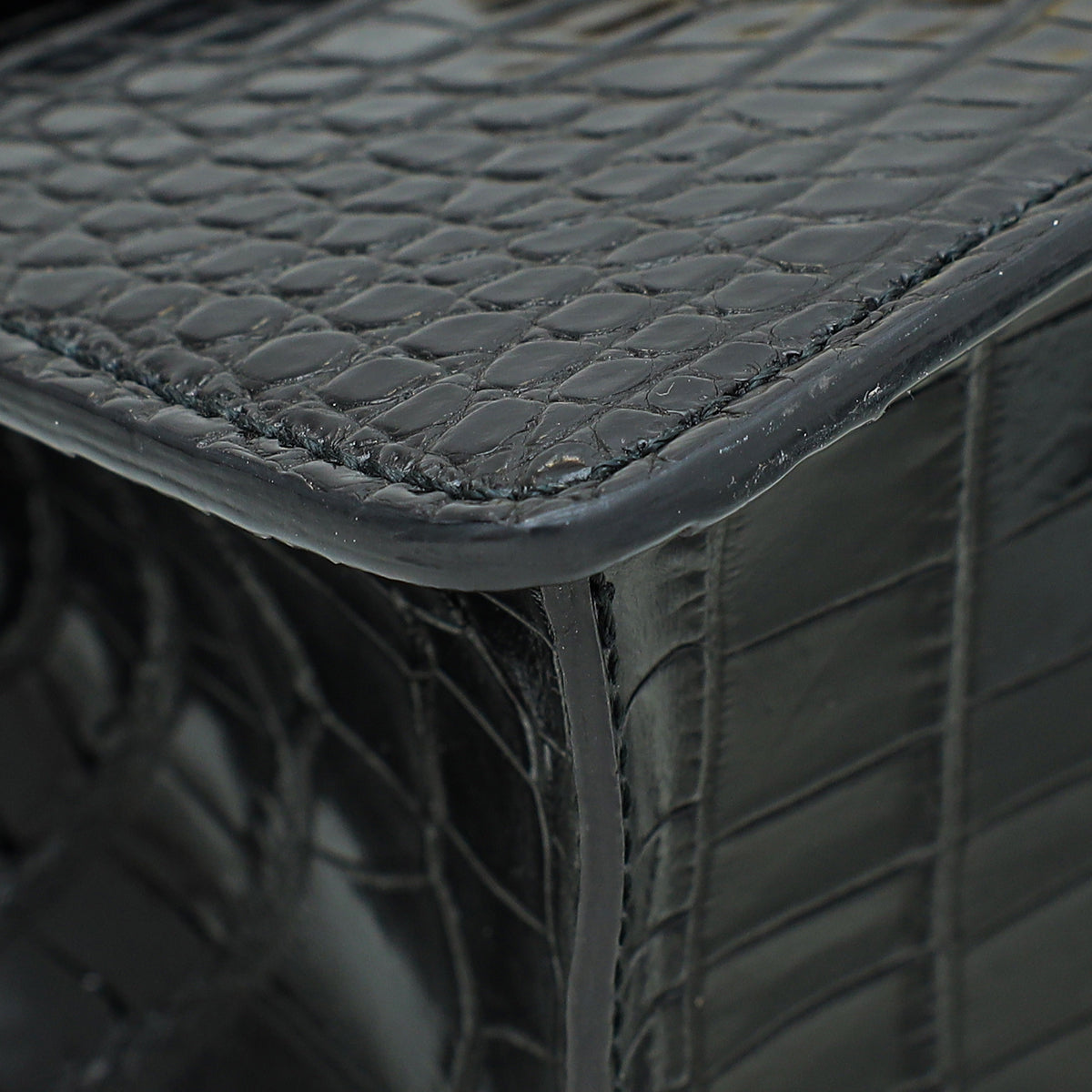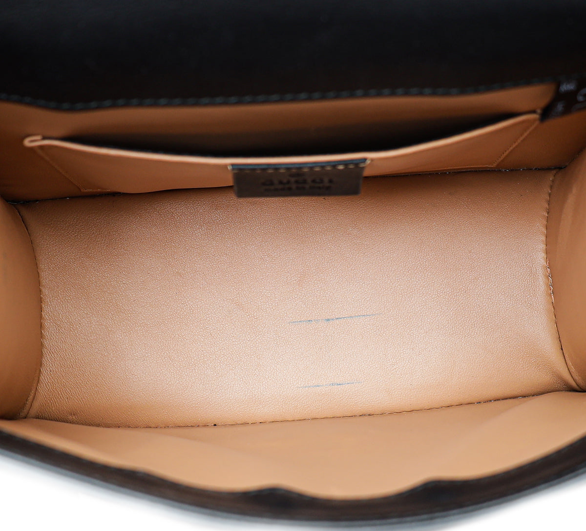 Gucci Shiny Black Alligator Sylvie Mini Top Handle Bag