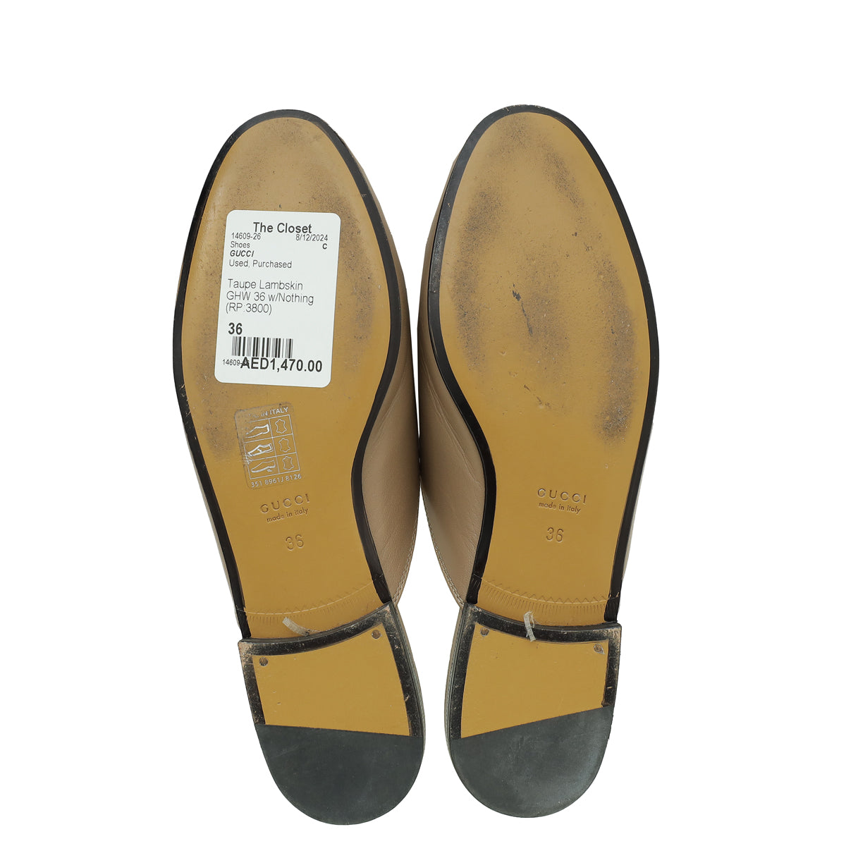 Material: Taupe Lambskin Leather with Horsebit Detail