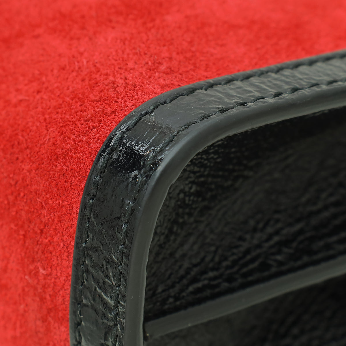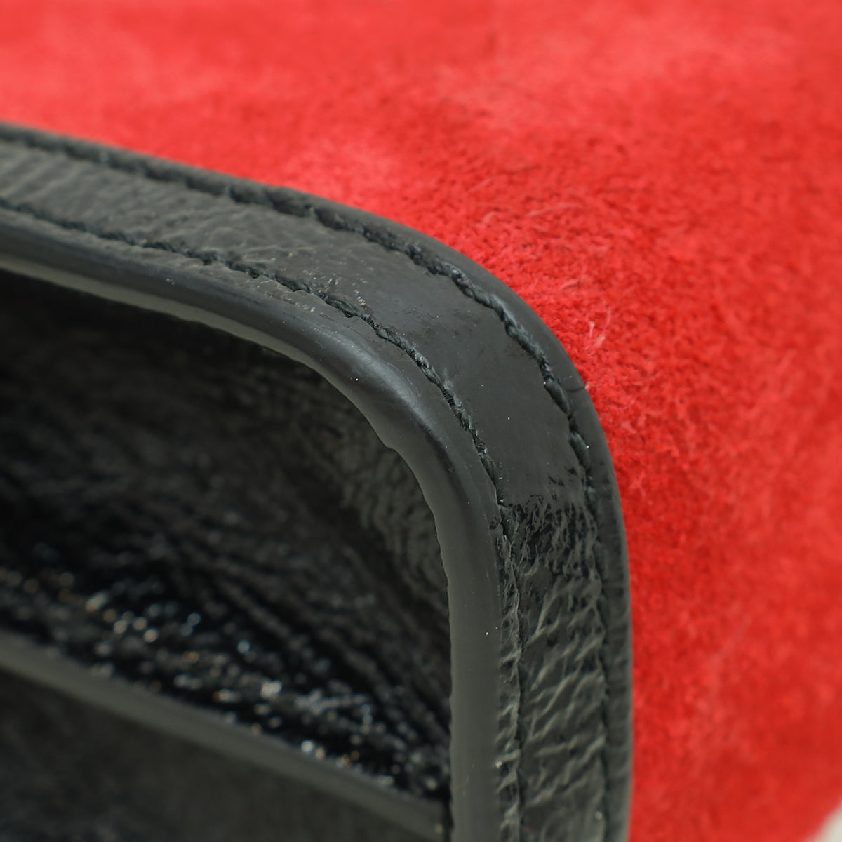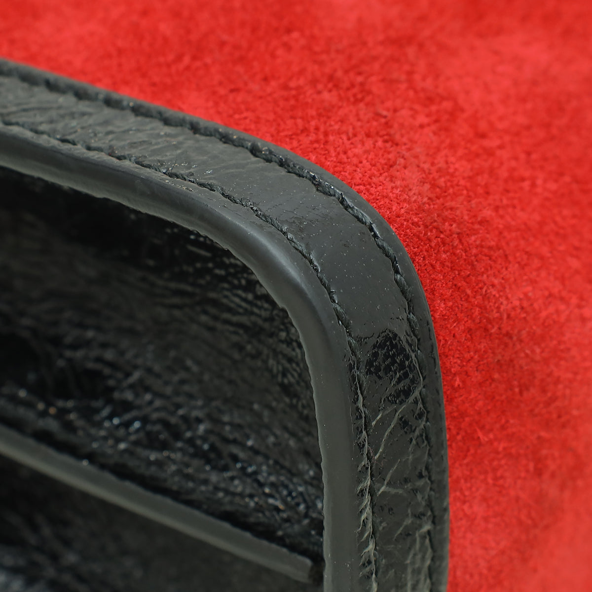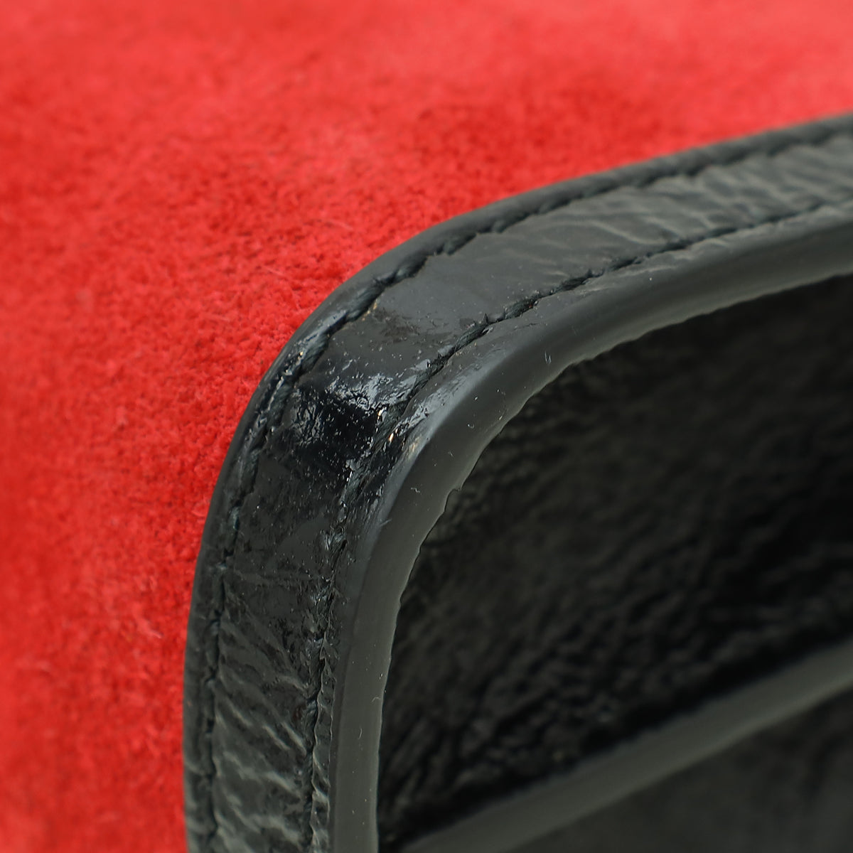 Material: Red Suede with Red/Navy Web and Black Patent Leather Trim