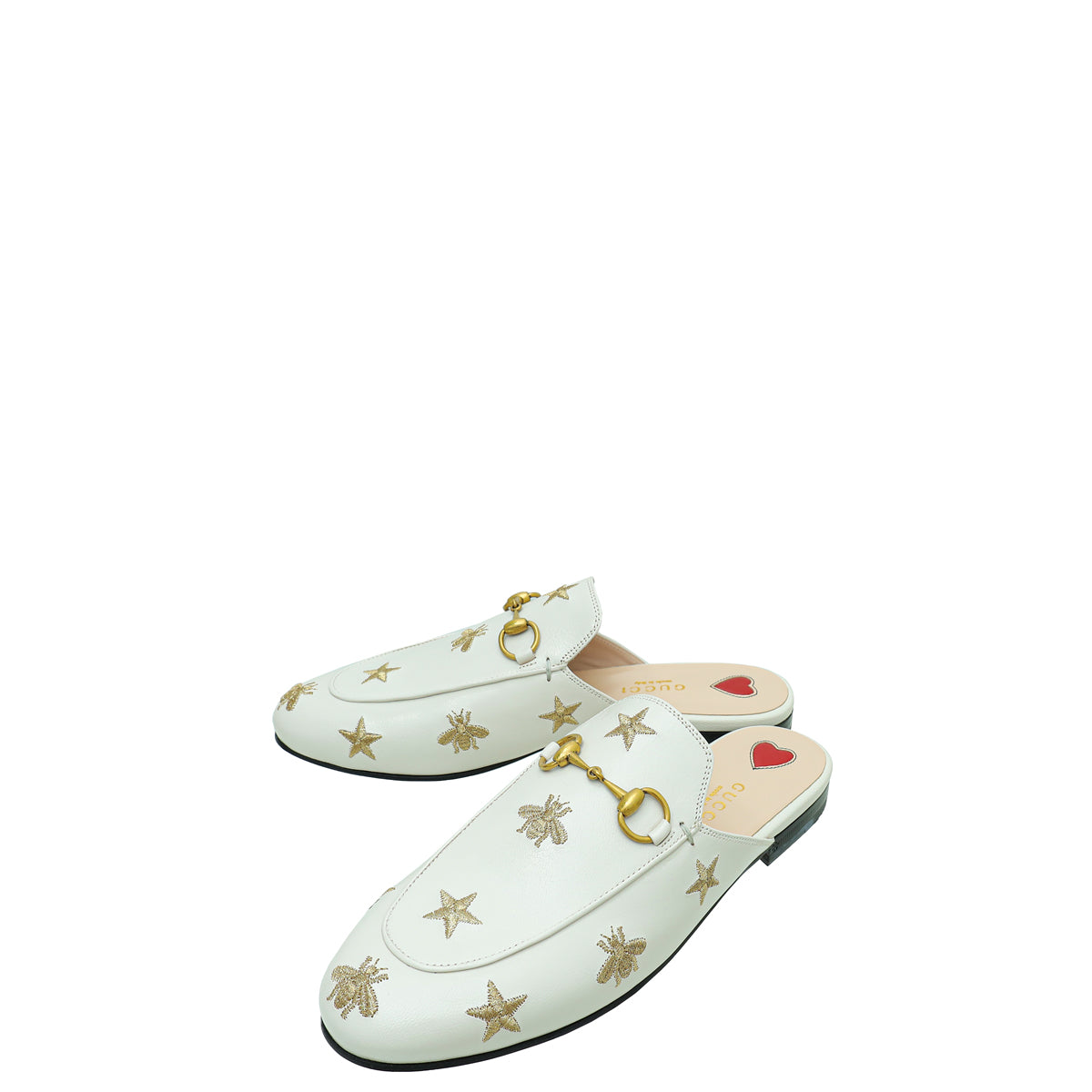 Gucci White Princetown Embroidered Bee Star Mules 36