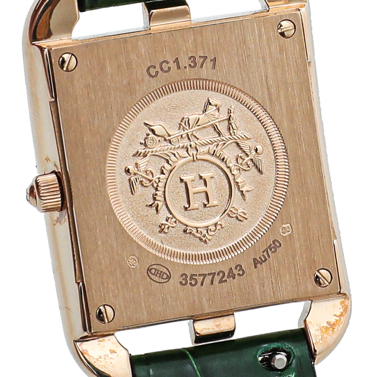 Hermes 18K Rose Gold Cape Cod Diamond Crocodile Strap 31mm Small Watch