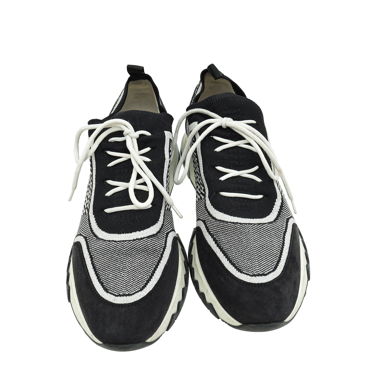Hermes Bicolor Goatskin Suede Knit Addict Sneakers 38.5