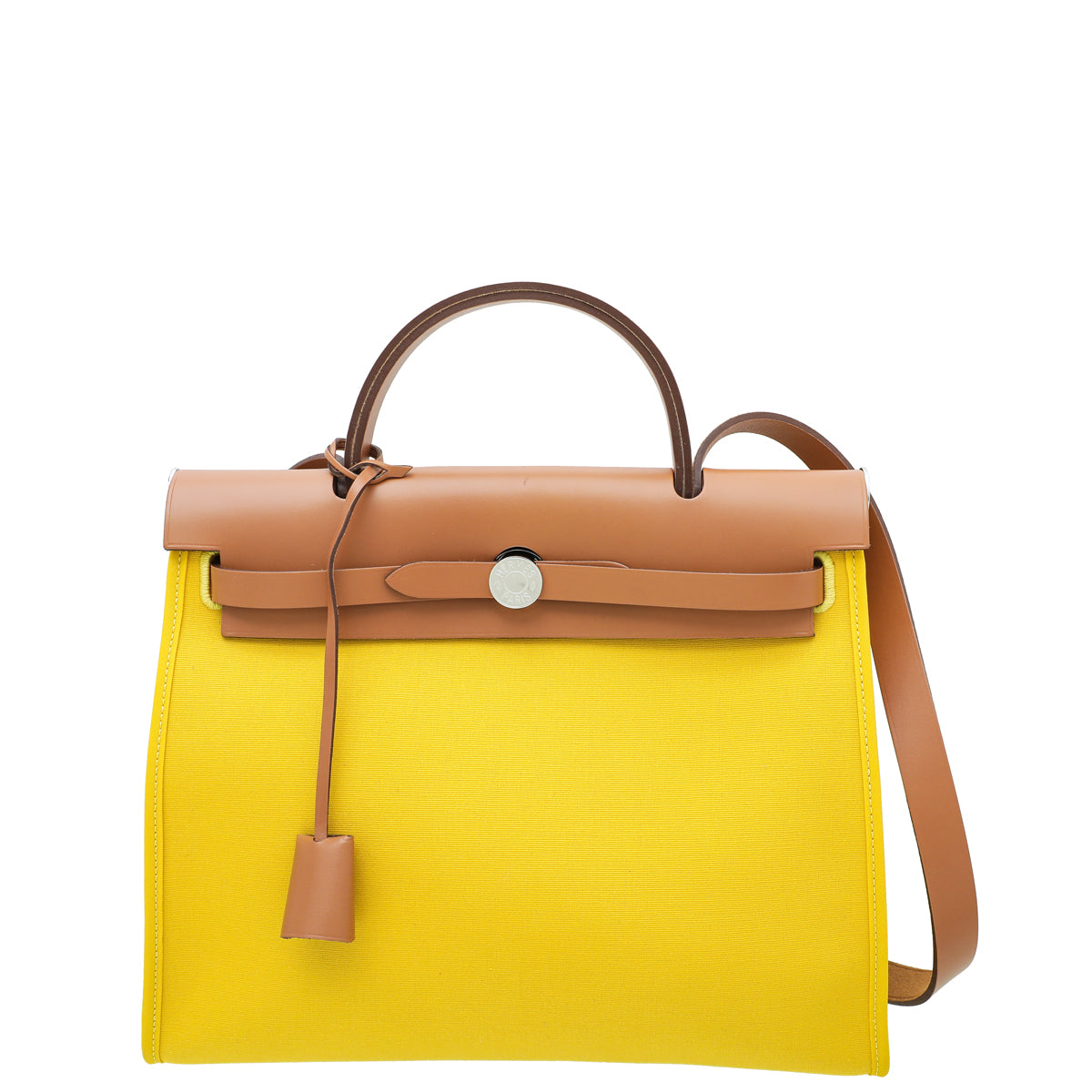 Hermes Bicolor Herbag PM Vache Hunter Toile Bag