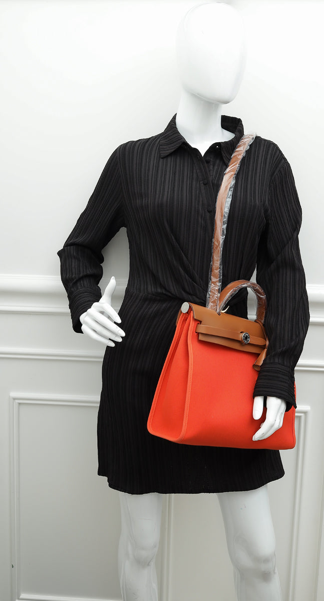 Hermes Bicolor Herbag Zip 31 PM Retourne Toile Militaire Vache Hunter Bag
