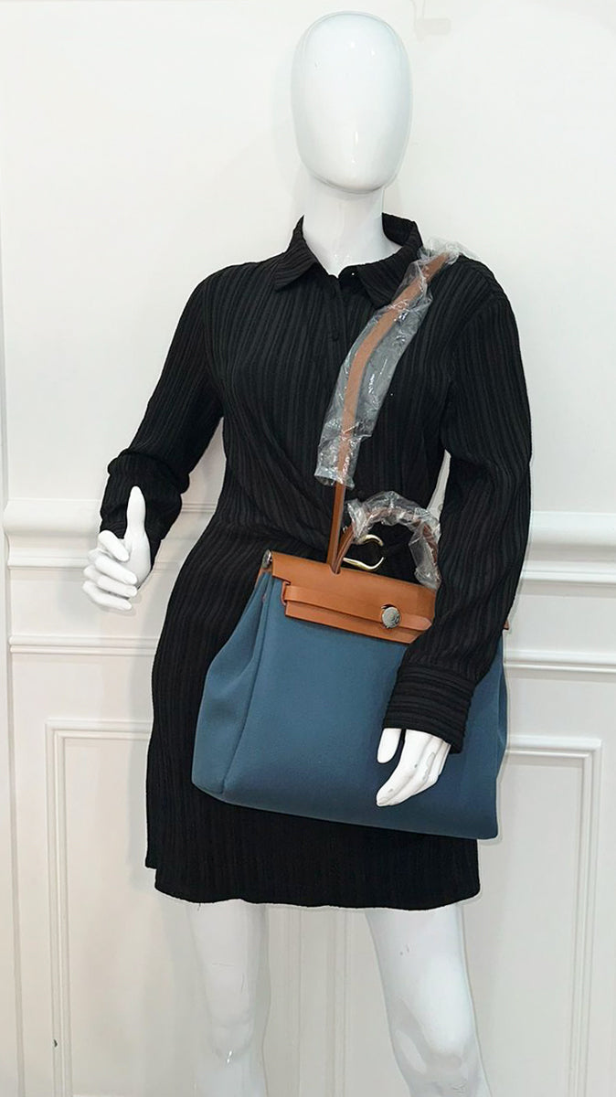 Hermes Bicolor Herbag Zip 31 Retourne PM Toile Vache Hunter Bag