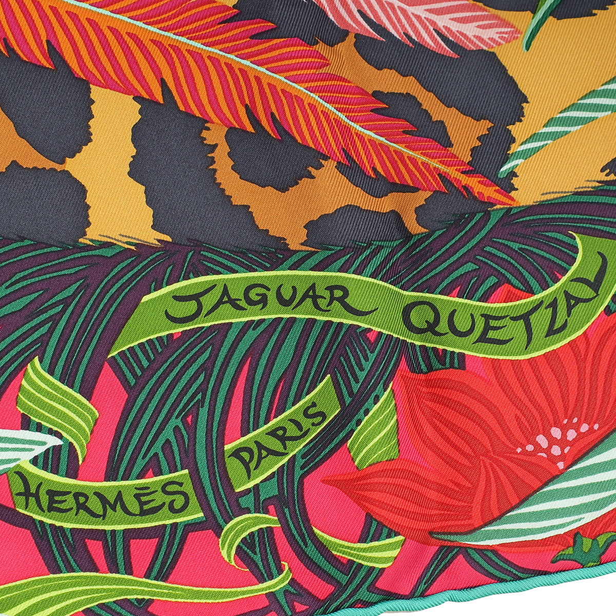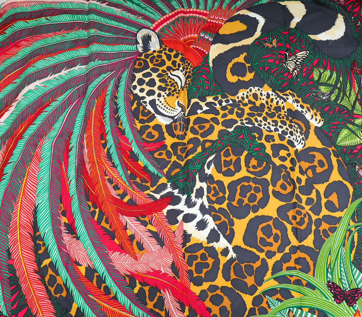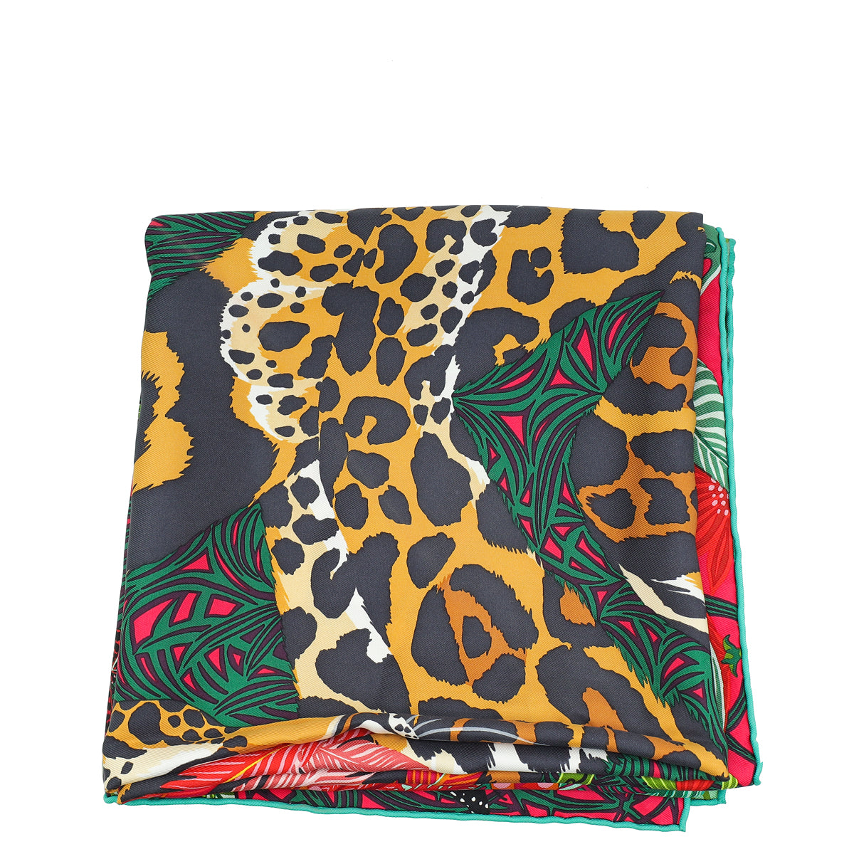 Hermes Bicolor Silk Jaguar Quetzal 90 Scarf