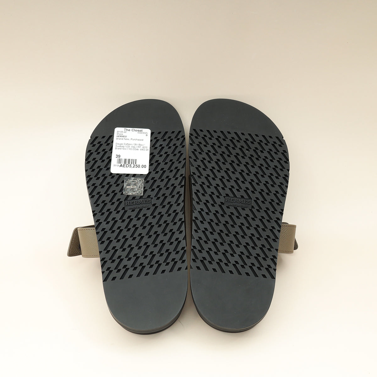 Hermes Etoupe Chypre Sandals 39