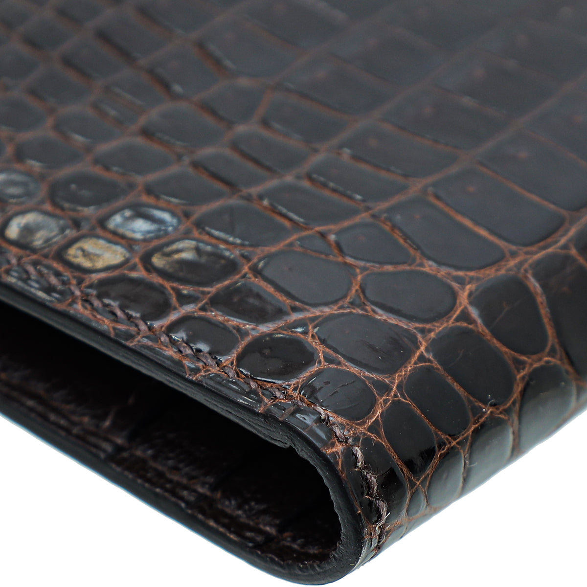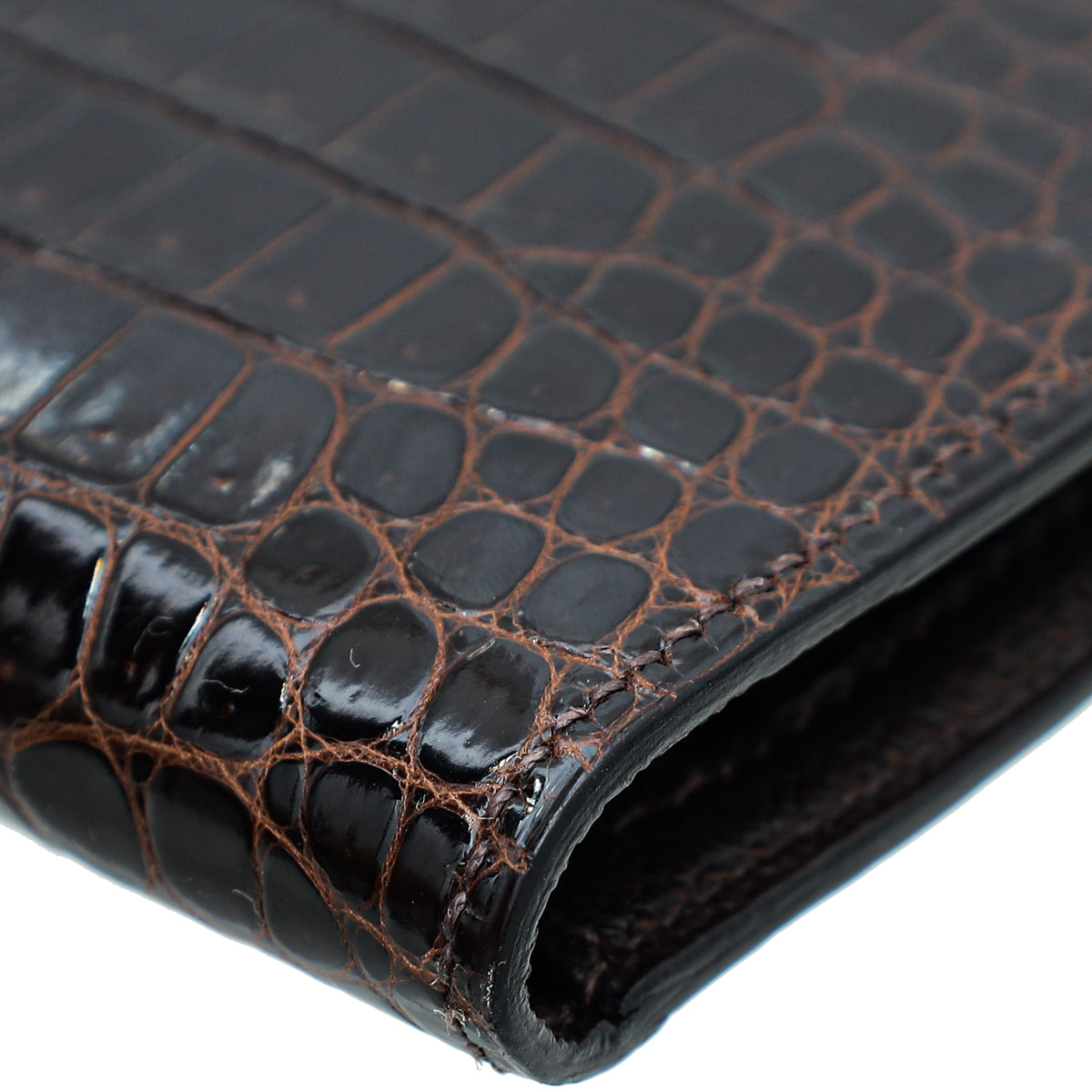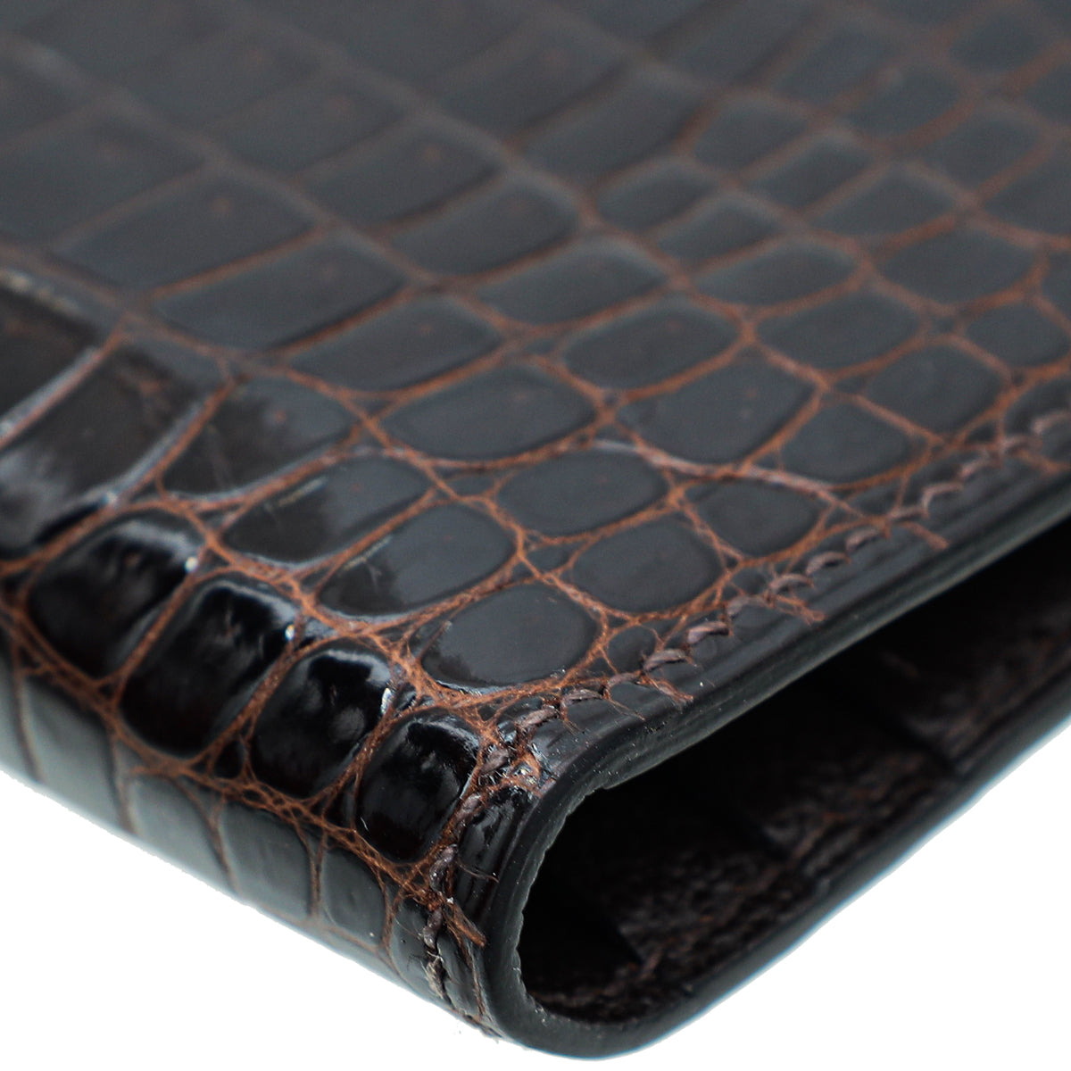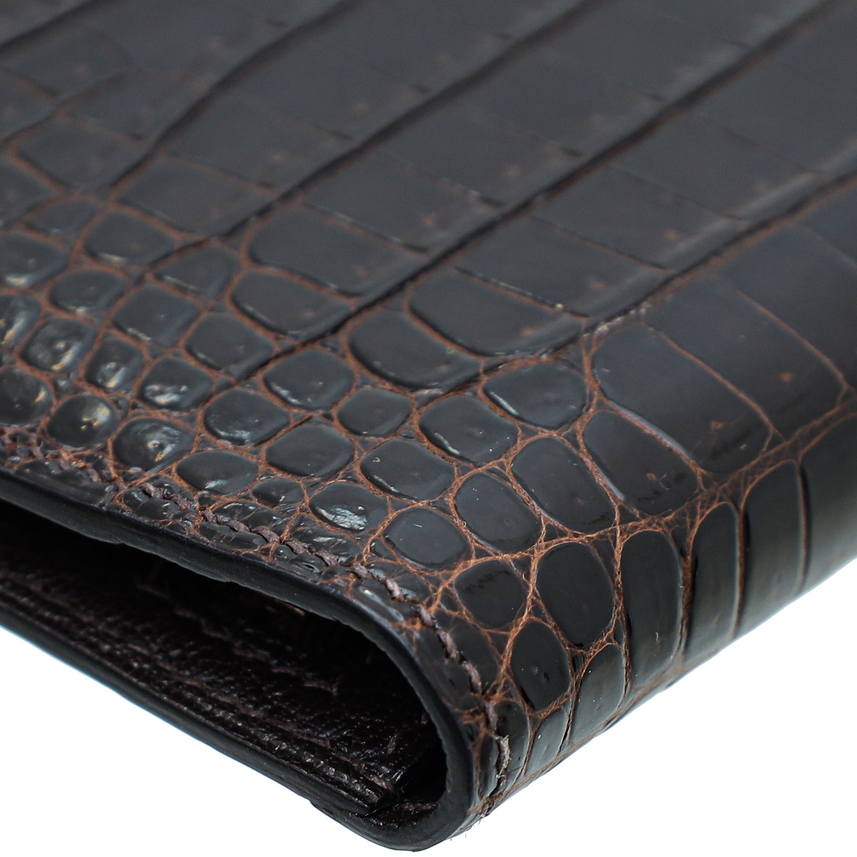 Hermes Havane Shiny Porosus Crocodile Diamond Bearn Wallet