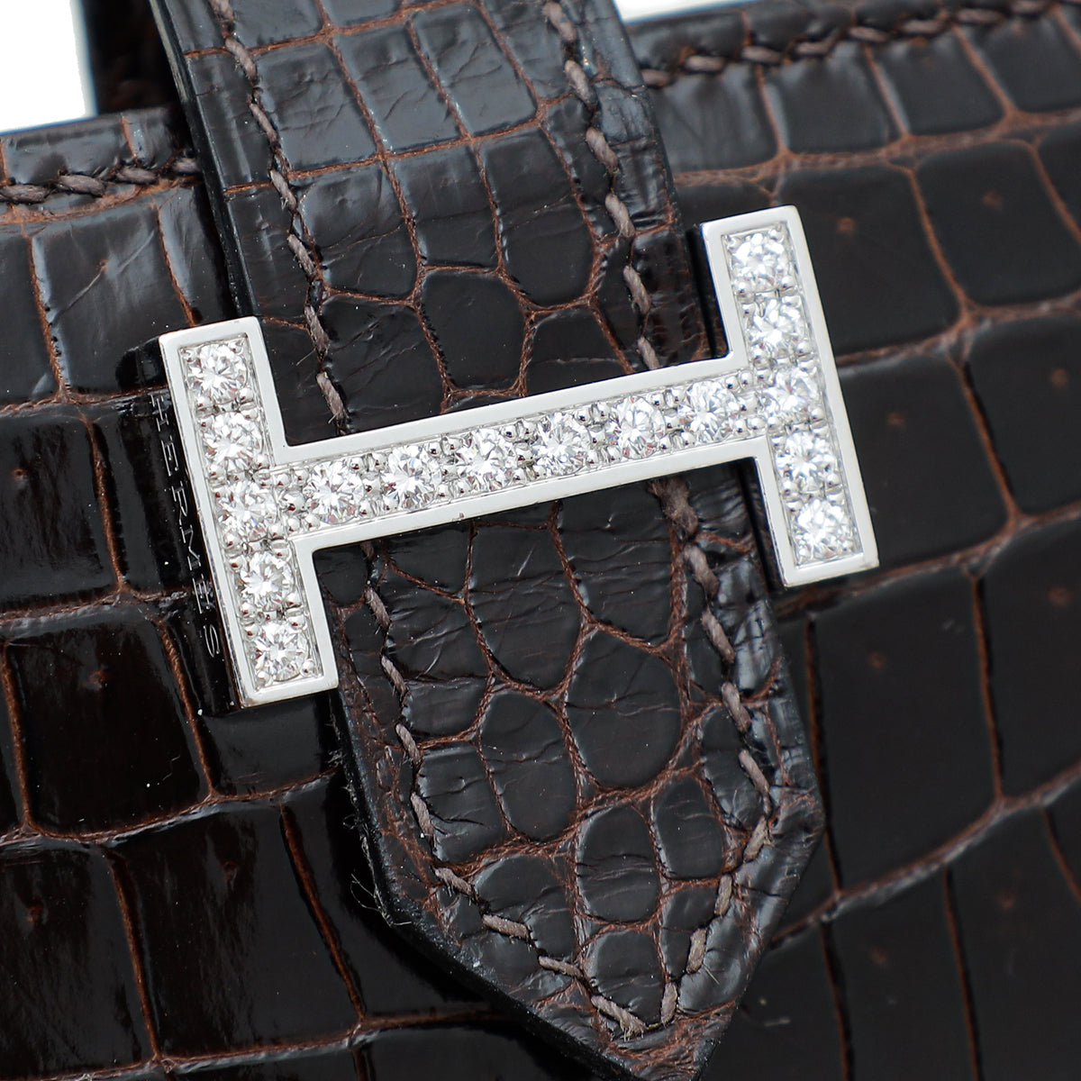Material: Havane Shiny Crocodile Leather with 18K White Gold "H" with 16 Diamond (0.64 Carats)