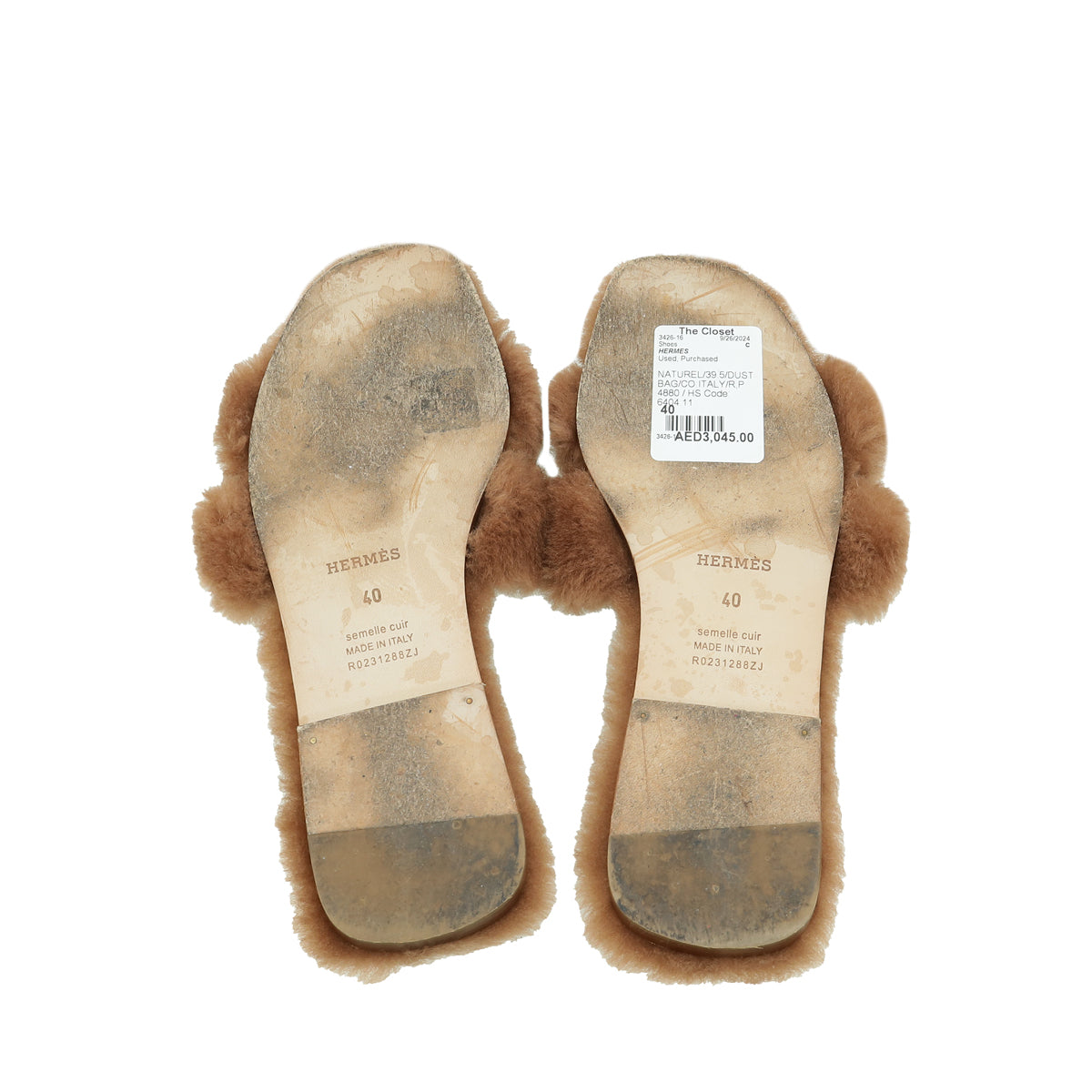 Hermes Naturel Oran Shearling Sandal 40-Hermes-THE CLOSET