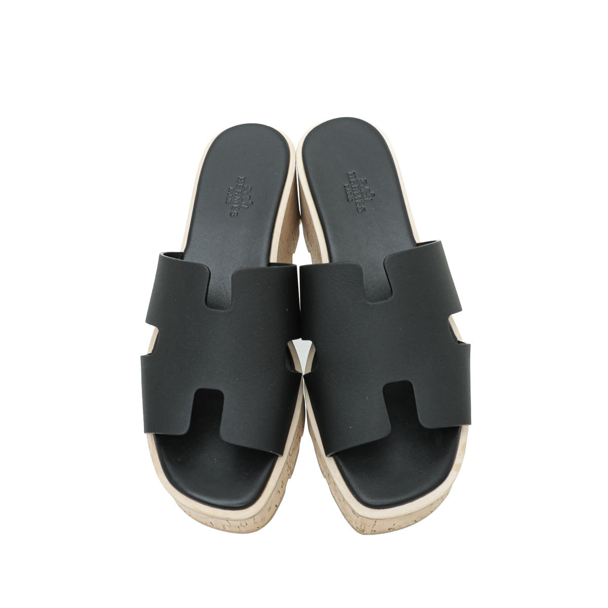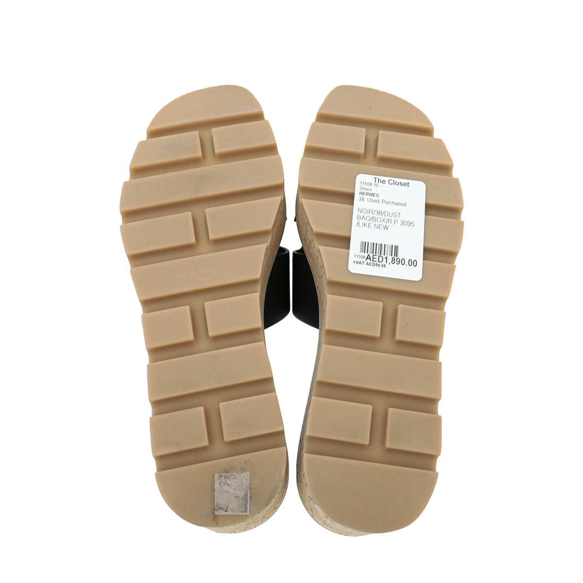 Hermes Noir Eze 30 Cork Sandal 38-Hermes-THE CLOSET