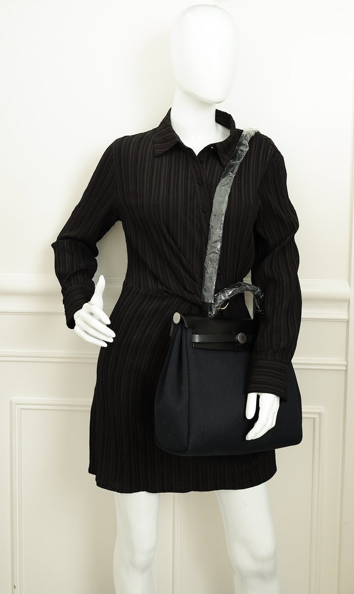 Hermes Noir Herbag Zip 31 PM Retourne Military Toile and Vache Bag