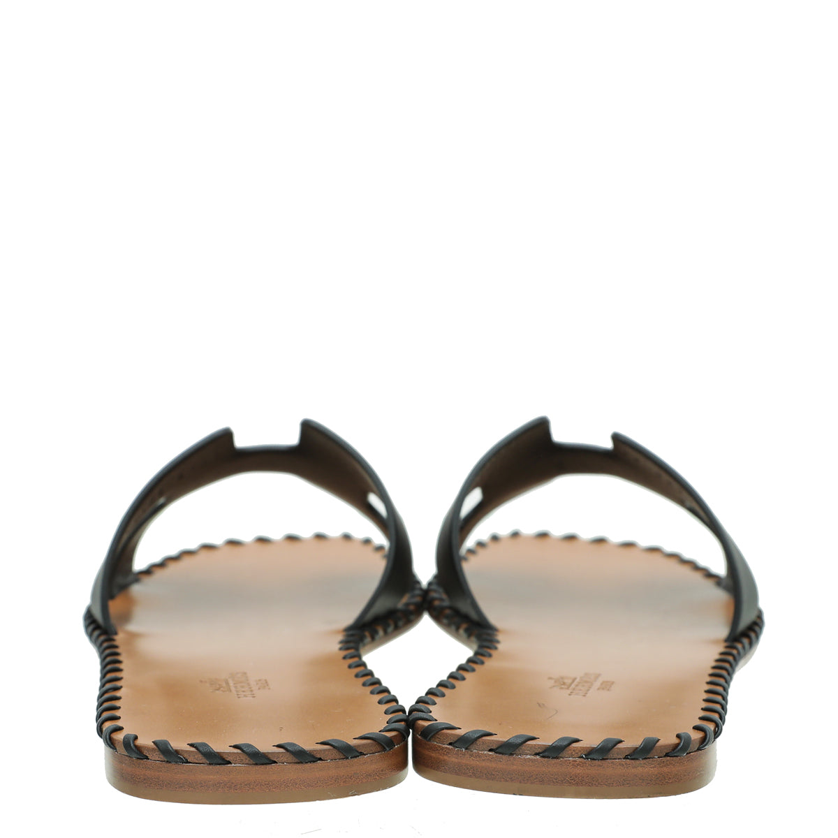 Hermes Noir Oran Braided Sole Edge Sandal 39