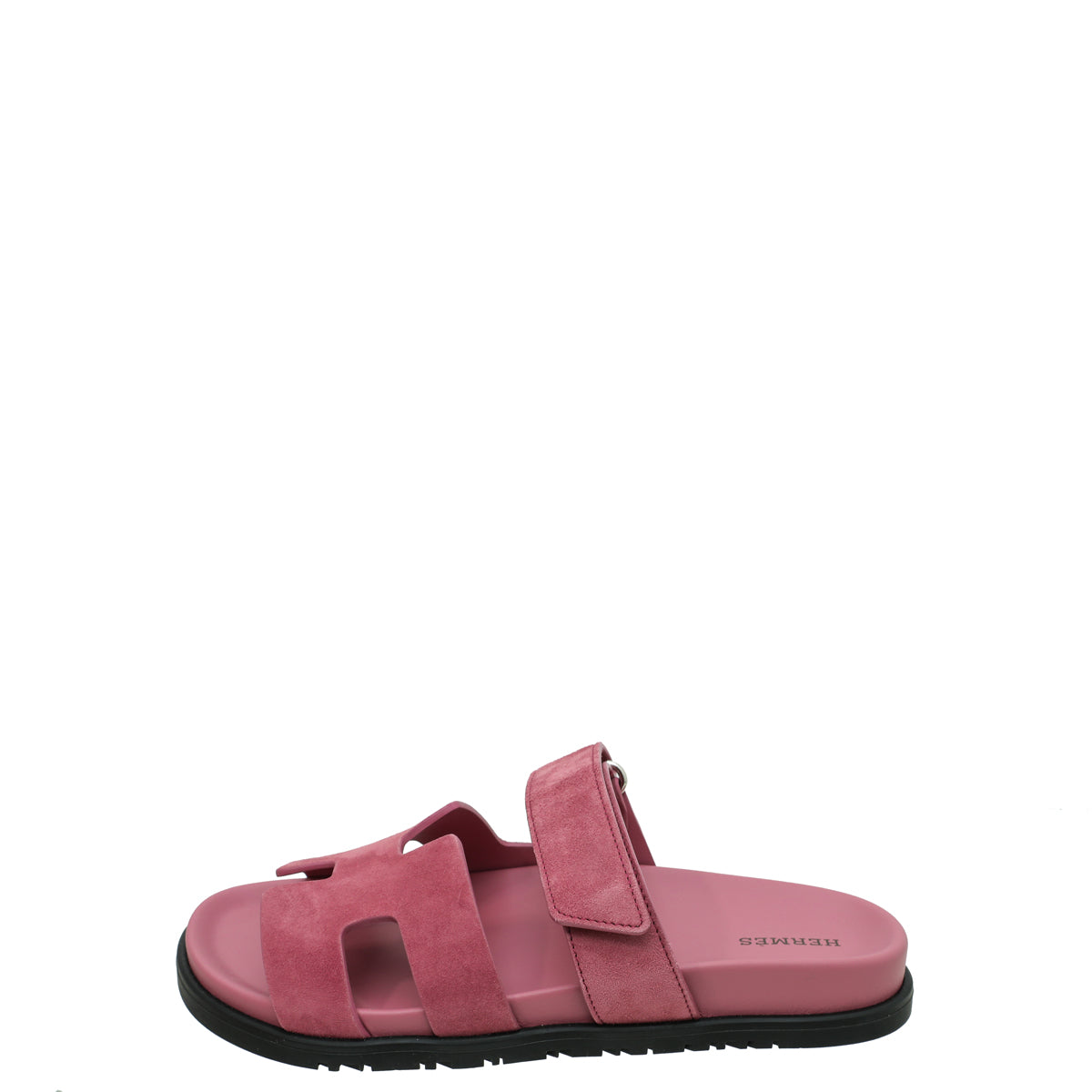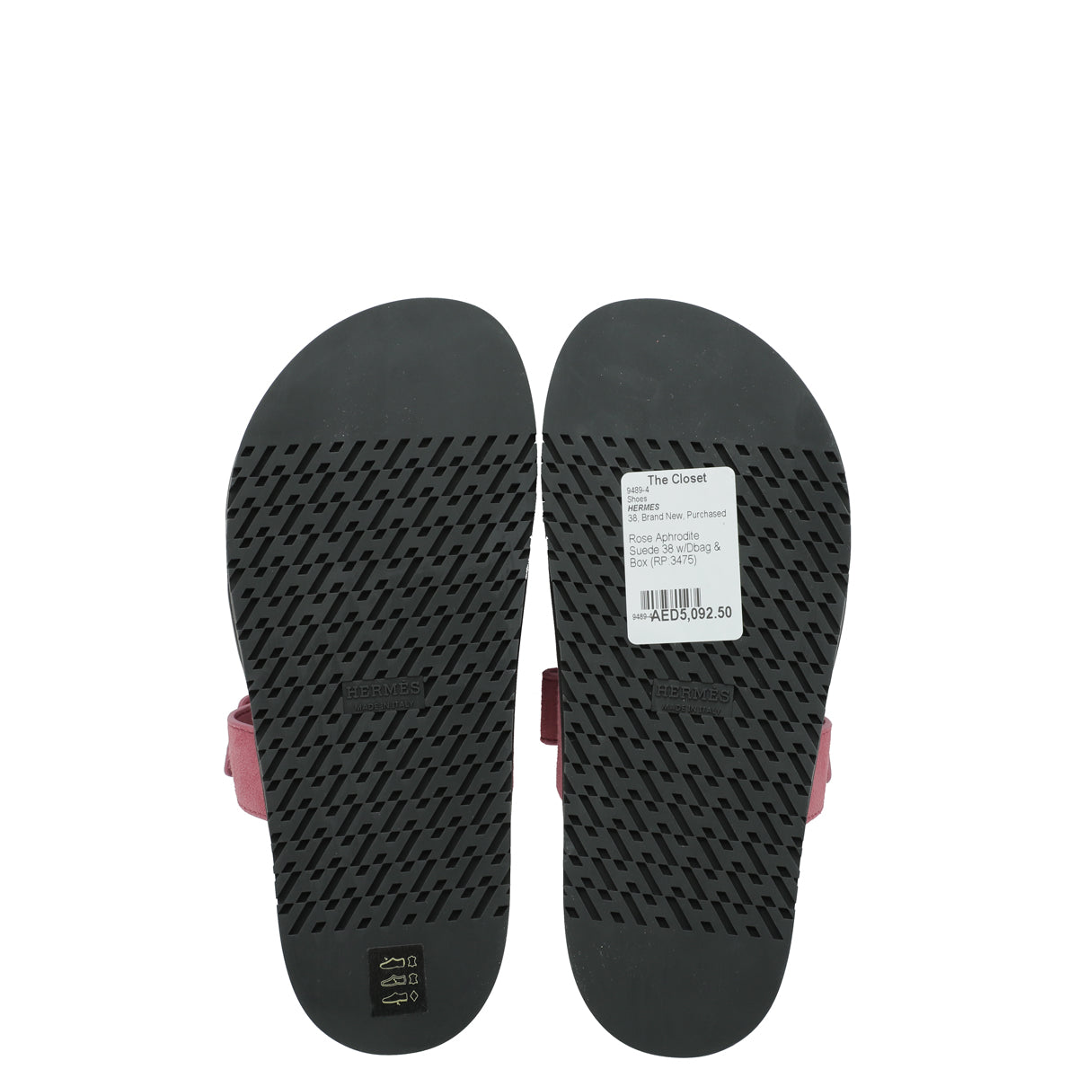 Hermes Rose Aphrodite Suede Chypre Sandals 38