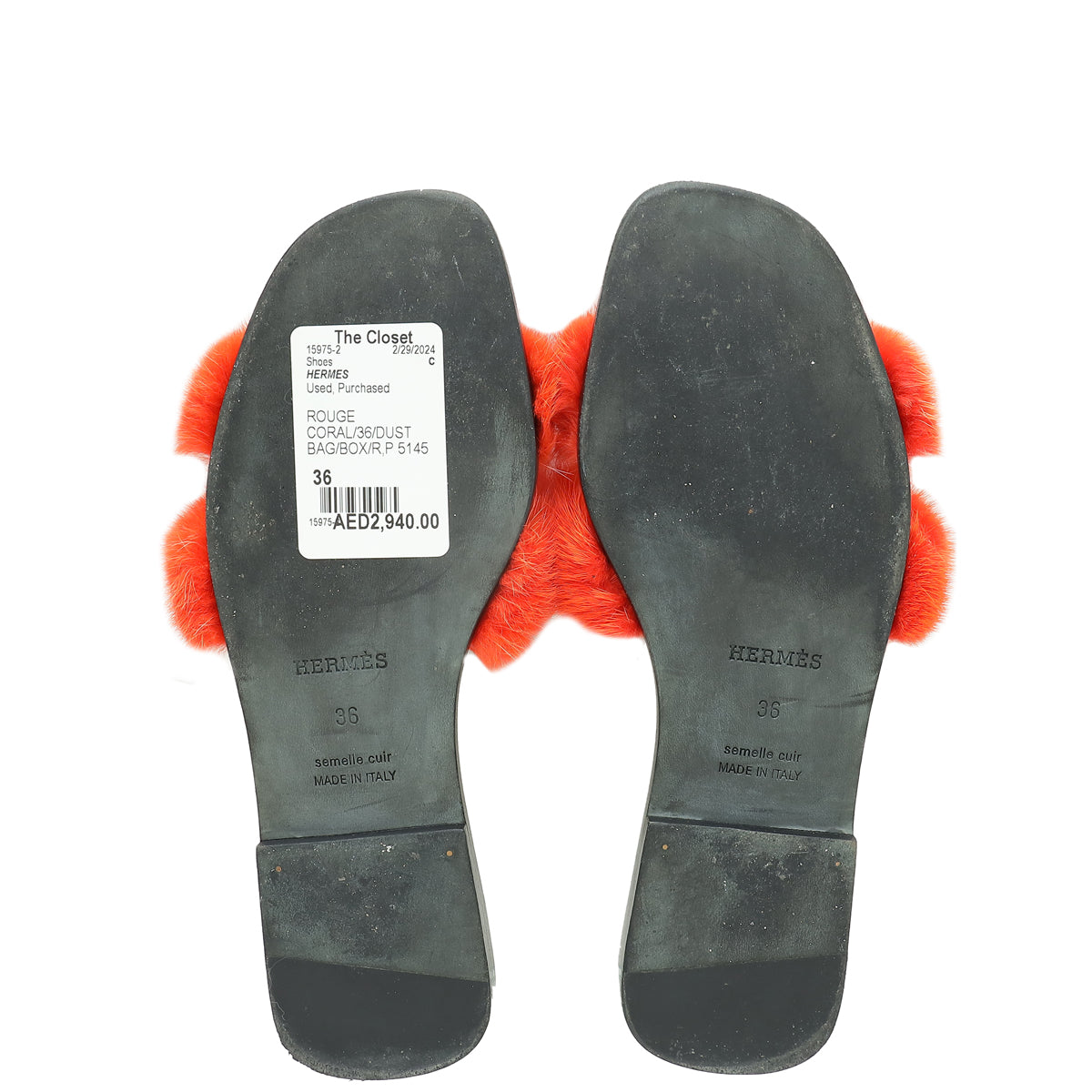 Hermes Rouge Coral Oran Mink Fur Sandal 36